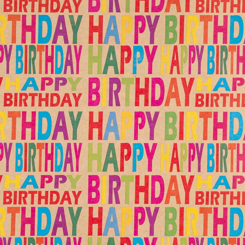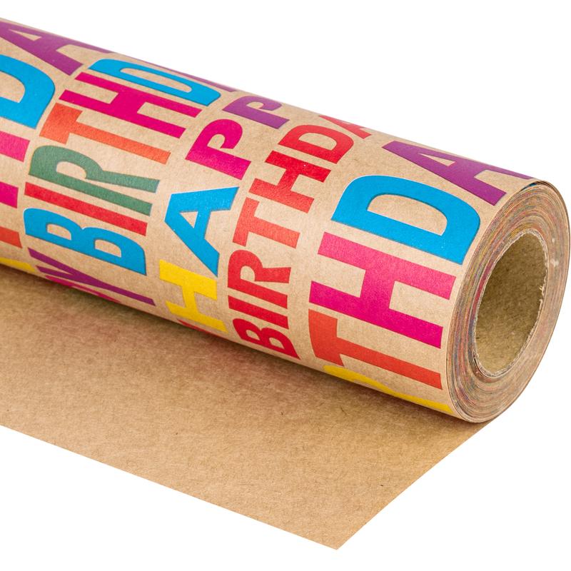 Kraft wrapping paper with colorful "Happy Birthday" text makes gift wrapping eye-catching. It brings sincere blessings to the birthday person. Perfect for birthday, party, and baby shower occasions.
