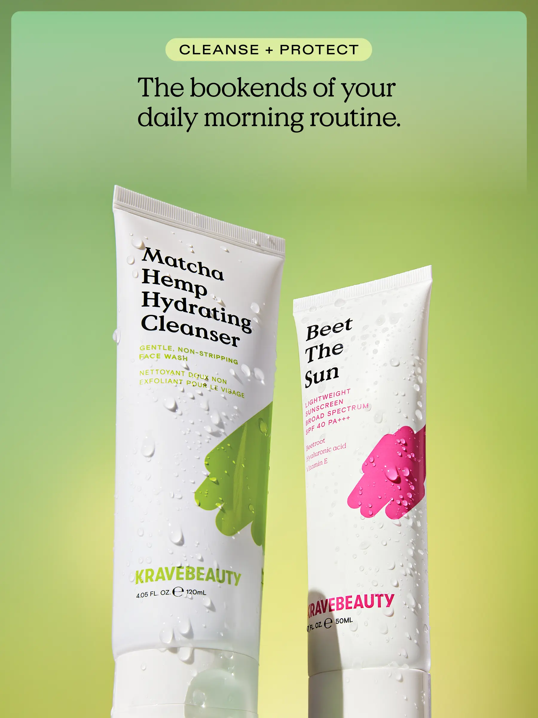 Your AM routine, bookended by the best. This hydrating duo features one of our community’s favorite pairings: Matcha Hemp Hydrating Cleanser and Beet The Sun SPF 40. Start your day with a gentle, non-stripping cleanse, then seal it in with lightweight, breathable sun protection. Add a serum or moisturizer in between, or keep it simple — either way, this duo’s got your skin barrier covered.