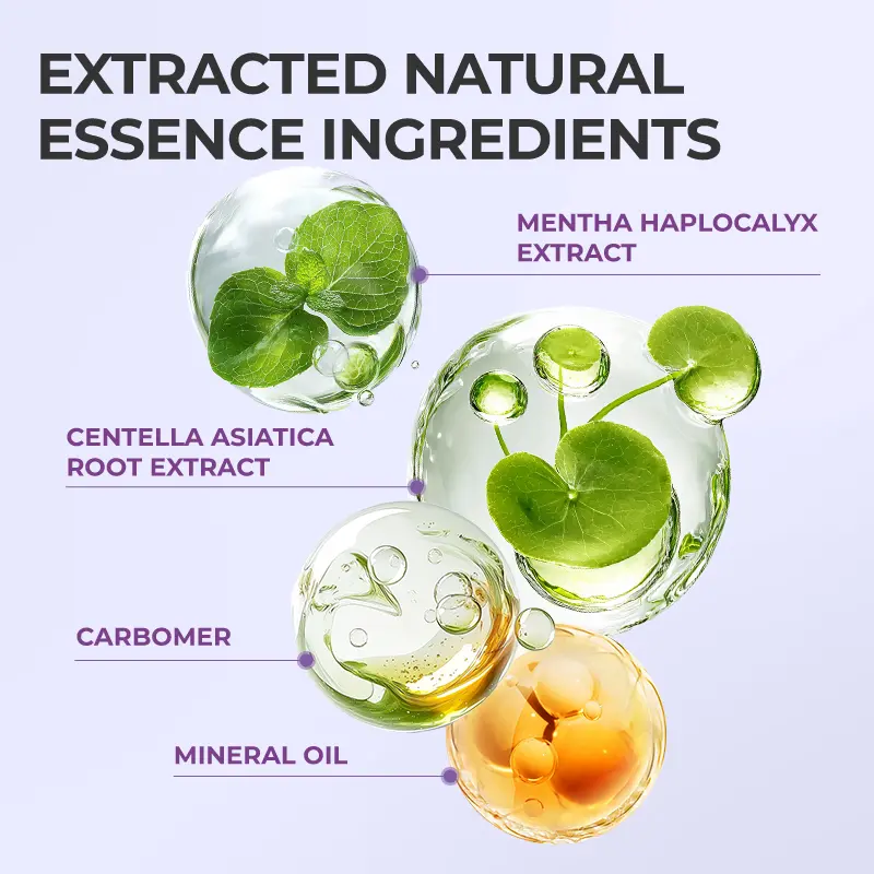IngredientsMENTHA HAPLOCALYX EXTRACT,CENTELLA ASIAT!CA ROOT EXTRACT,CARBOMER,GLYCERYL STEARATE,MINERAL OIL,AOUA