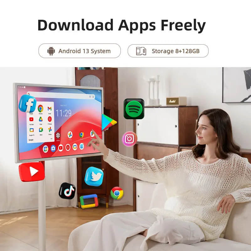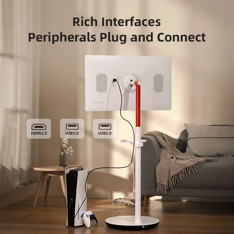 Designed for mobility, this A32Q7PRO Portable Monitor features 5 silent universal wheels, allowing you to effortlessly move it throughout your home. With dual 10W 3D speakers integrated into the lifting rod, it transforms into a mobile entertainment center—perfect for the living room, kitchen, bedroom, or outdoor gatherings!