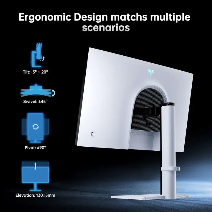 Fully Adjustable Stand: Adjust tilt (-5° to 20°), swivel (±45°), and height (130±5mm range) to find your perfect viewing angle. VESA 100×100mm mount ready. Haze 25% anti-glare coating with 3H surface hardness protects the screen.