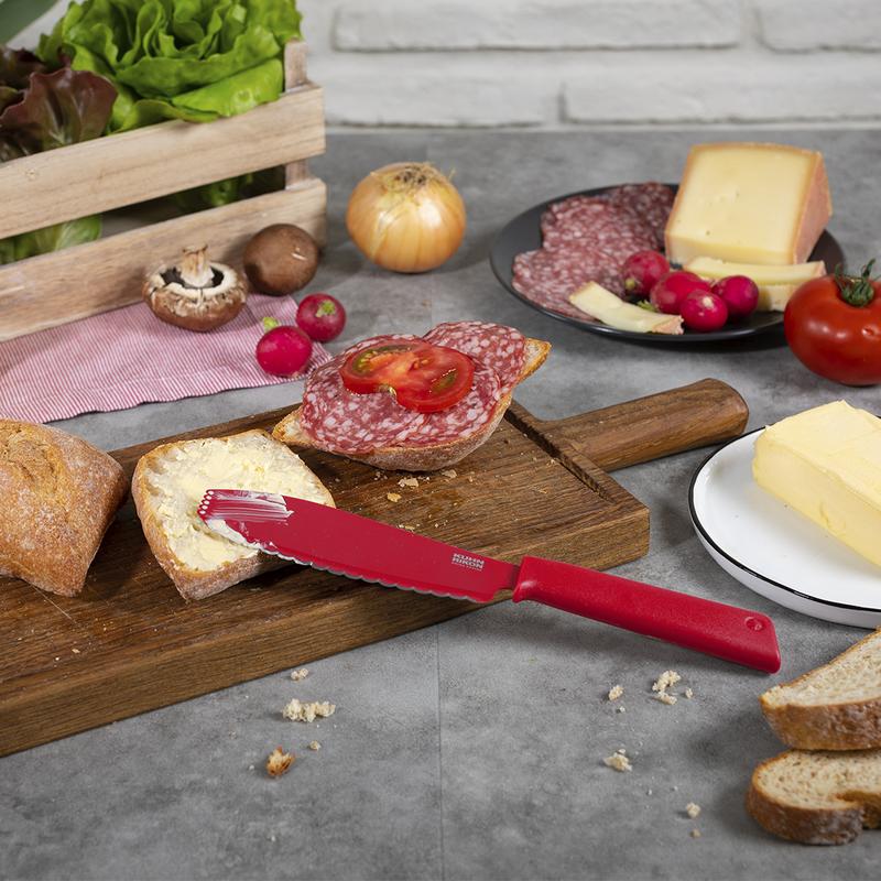 The ultimate sandwich knife just got better! This multifunctional tool now shaves delicate curls for easy spreading of cold butter. The grater tip helps spread butter, making it softer and easier to apply evenly. It's extra sharp scalloped edge is perfect for slicing tomatoes, bread, and spreading butter. New grater tip enhances butter spreading even before the butter has softened.