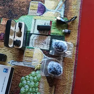 Packing list: Charging compartment*1, Type-C Receiver *1, Microphone *2, Windproof ball*2 Apple Adapter (Rechargeable) *1, Manual *1, Charging Wire *1, Color Box *1