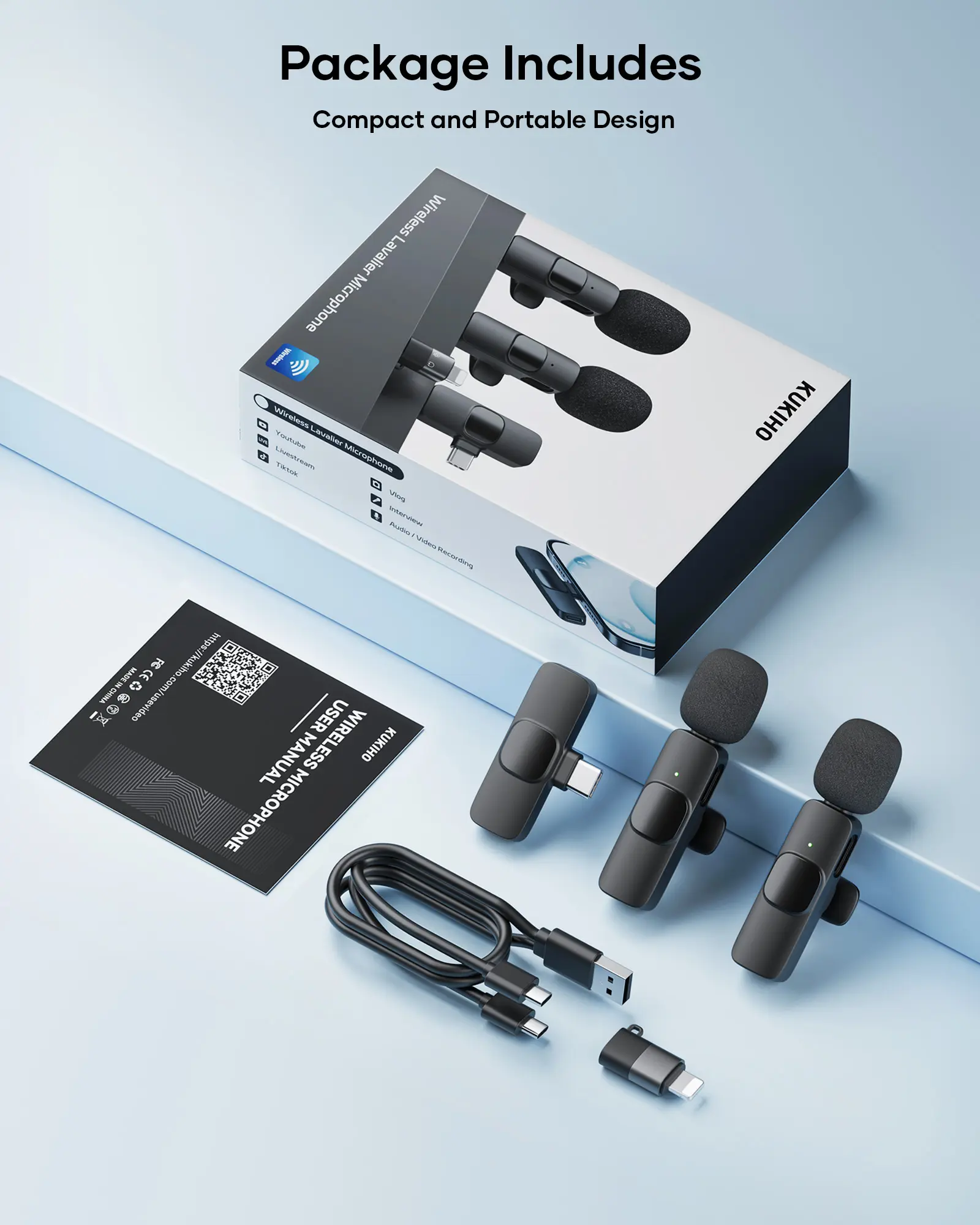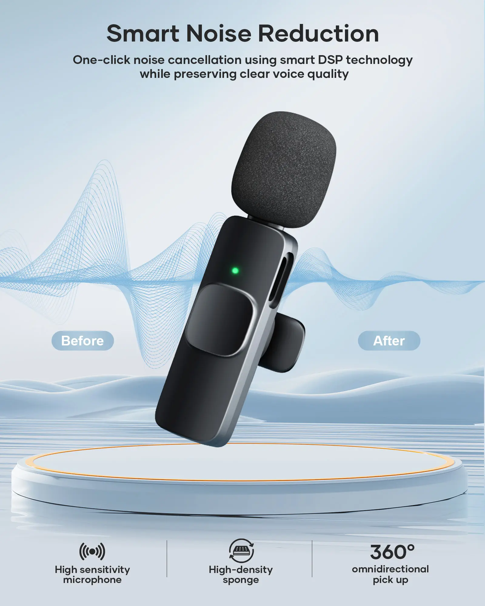 ·Omnidirectional Sound Pickup: Equipped with high-density windproof foam and a high-sensitivity microphone, it captures every sound detail clearly regardless of the surrounding environment. The package includes 2 lapel microphones, allowing two people to participate in video recording simultaneously.