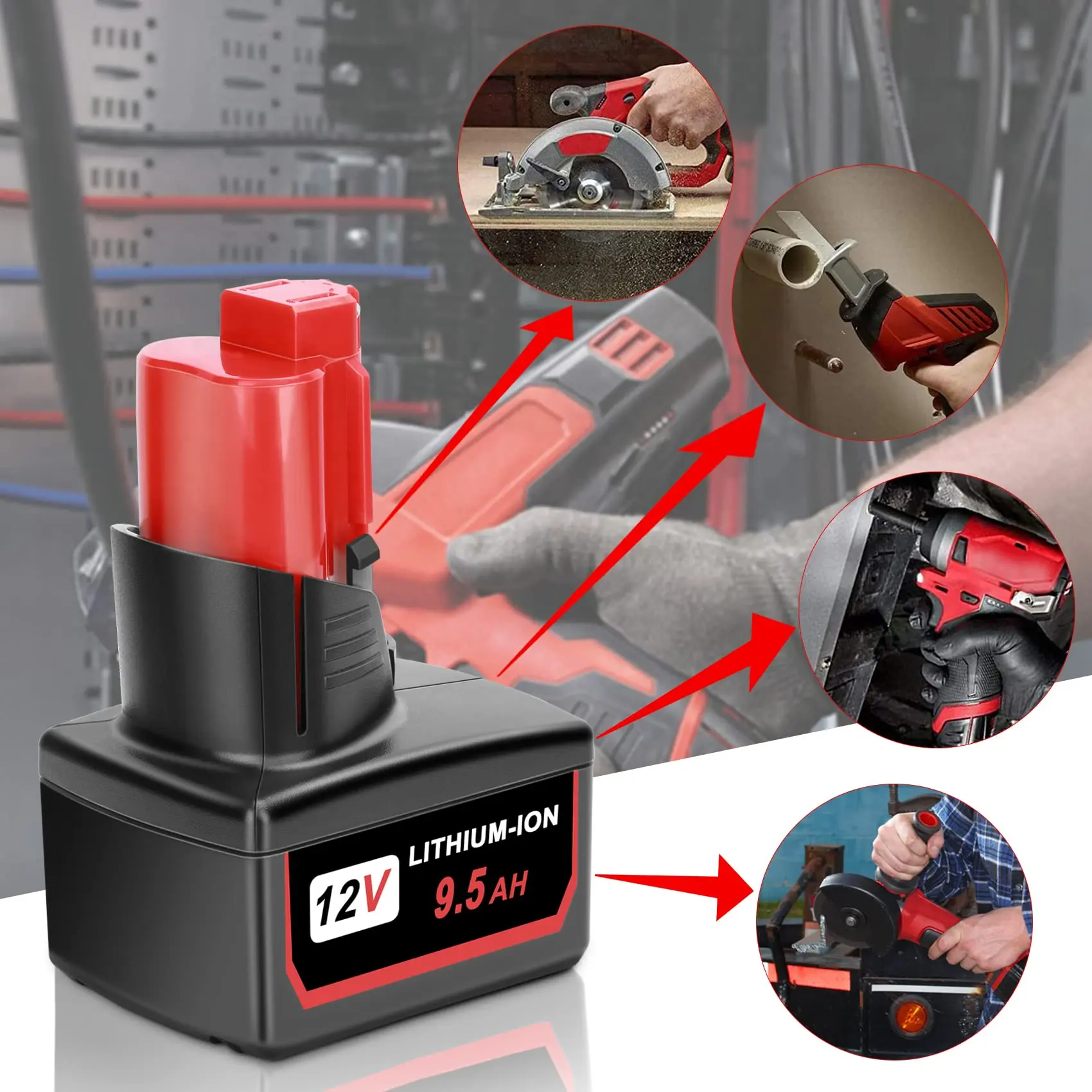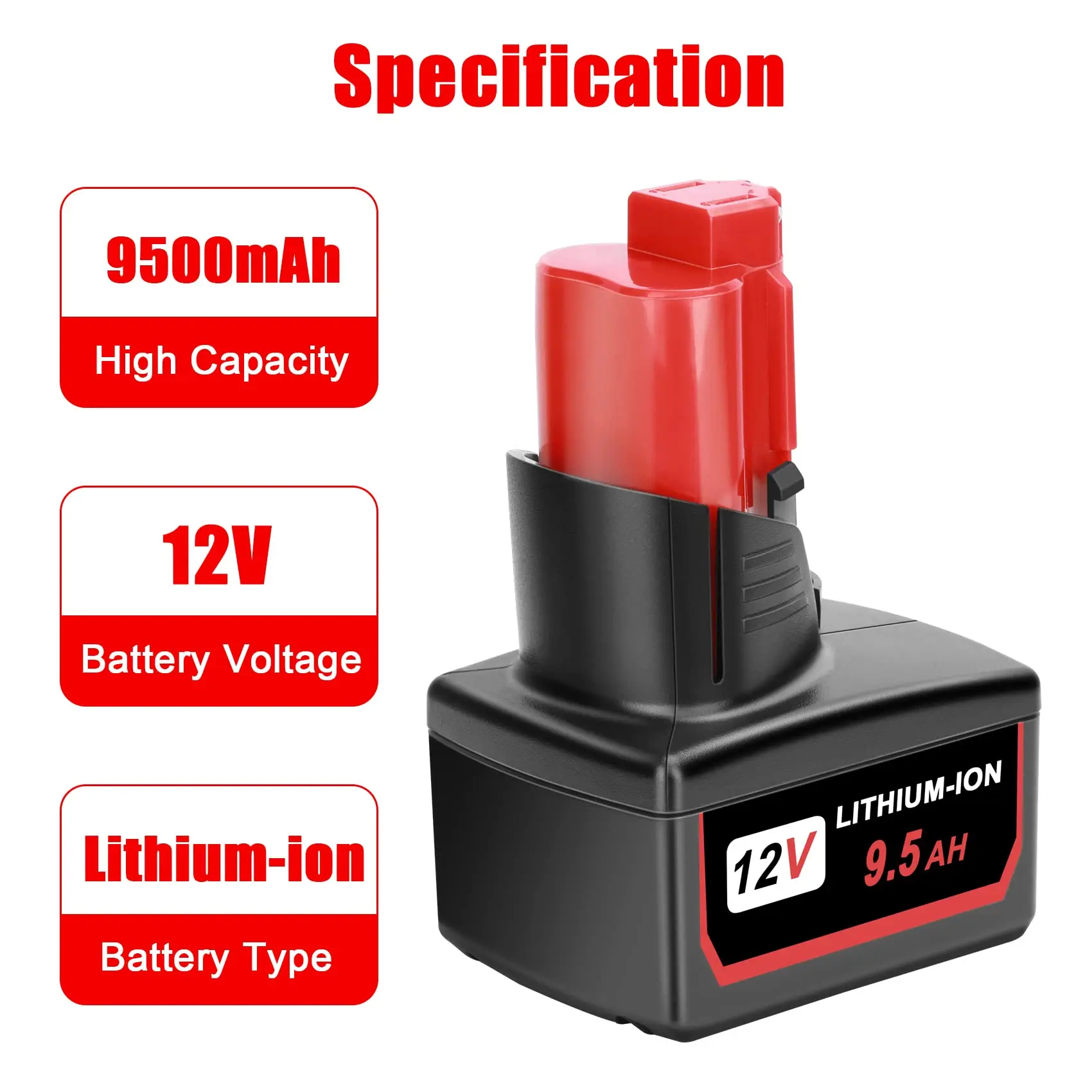 This 12V, 9.5Ah battery is perfect for Milwaukee ∧∧-12 cordless tools. It offers 114Wh of power, ensuring long-lasting performance. The battery is designed for seamless integration with your ∧∧-12 12V cordless tools, enhancing your workflow efficiency.
