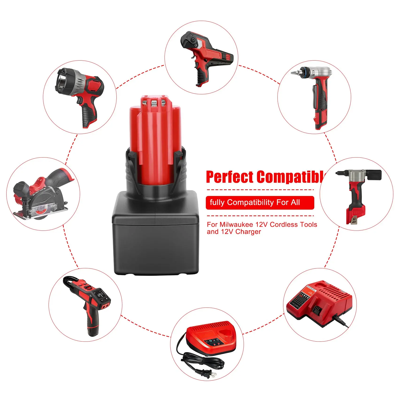 Compatible with a wide range of models: 48-11-2401, 48-11-2402, 48-11-2440, 48-11-2411, 48-11-2412, 48-11-2460, 48-11-2430, and 48-11-2420. This battery is ideal for ∧∧-12 12V cordless tools, providing versatile usage options.