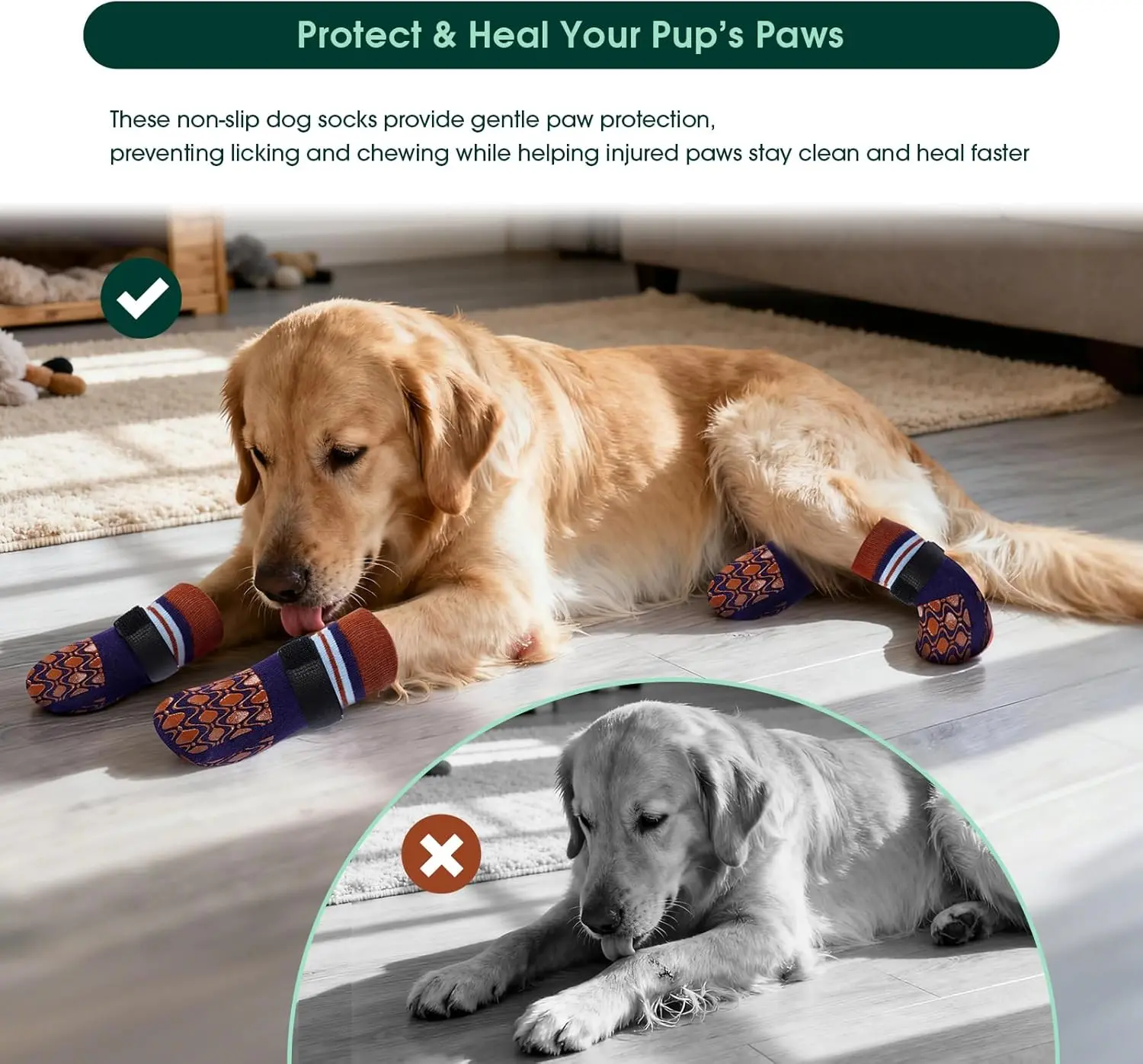 ·Prevents Licking & Protects Sensitive Paws: Our socks act as effective dog socks to prevent licking paws, stopping constant chewing and irritation. Ideal for dogs with allergies, wounds, or bandages, these socks serve as breathable dog paw protectors and help speed up recovery while minimizing stress