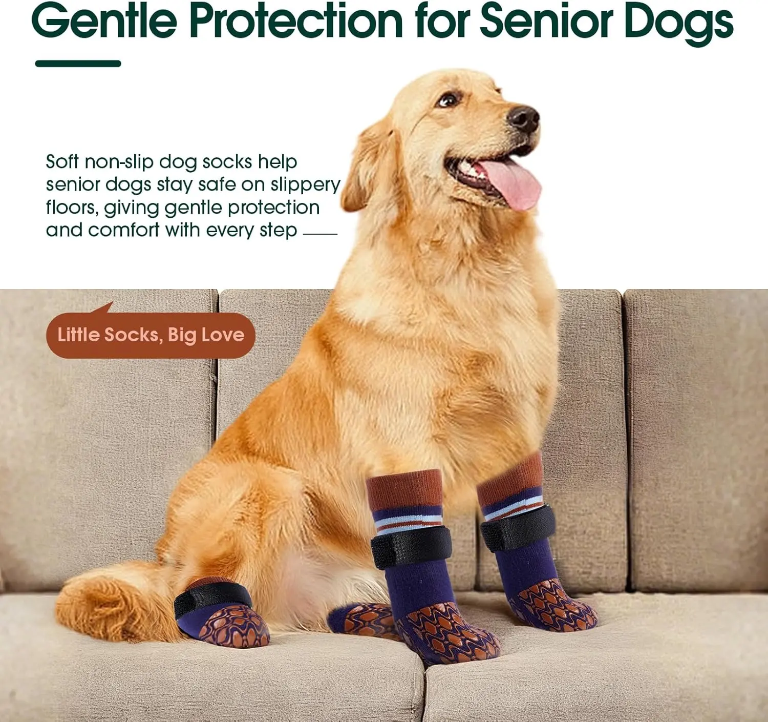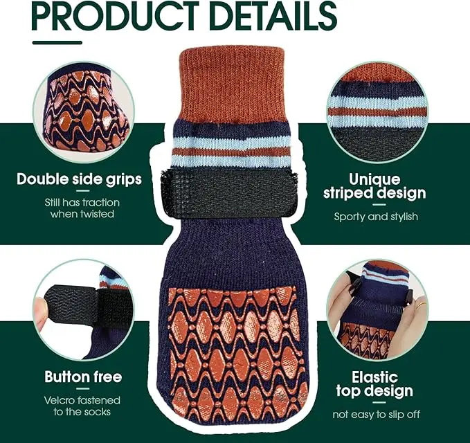 ·Anti-Slip Design for Indoor & Outdoor Safety: These non slip dog socks for hardwood floors are designed with double-sided rubber grippers to enhance traction and prevent slipping on tile, laminate, or hardwood surfaces. Perfect dog grippy socks for senior dogs with mobility issues or recovering from injuries