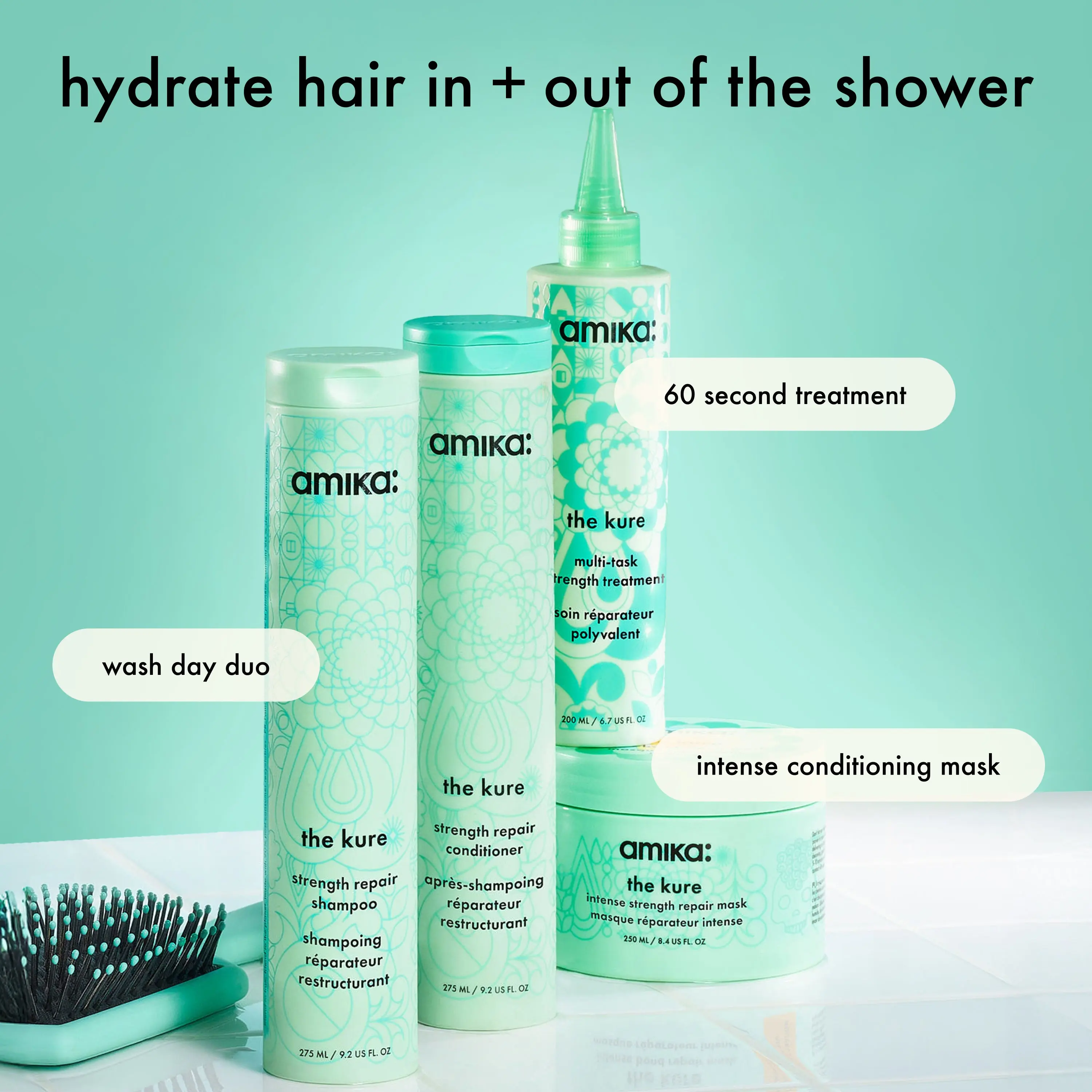 ·plant butters + vegan proteins: formulated with both plant butters + vegan proteins, the kure is rich in nutrients like omega fatty acids, vitamins + minerals + can provide keratin-like benefits from a plant source.