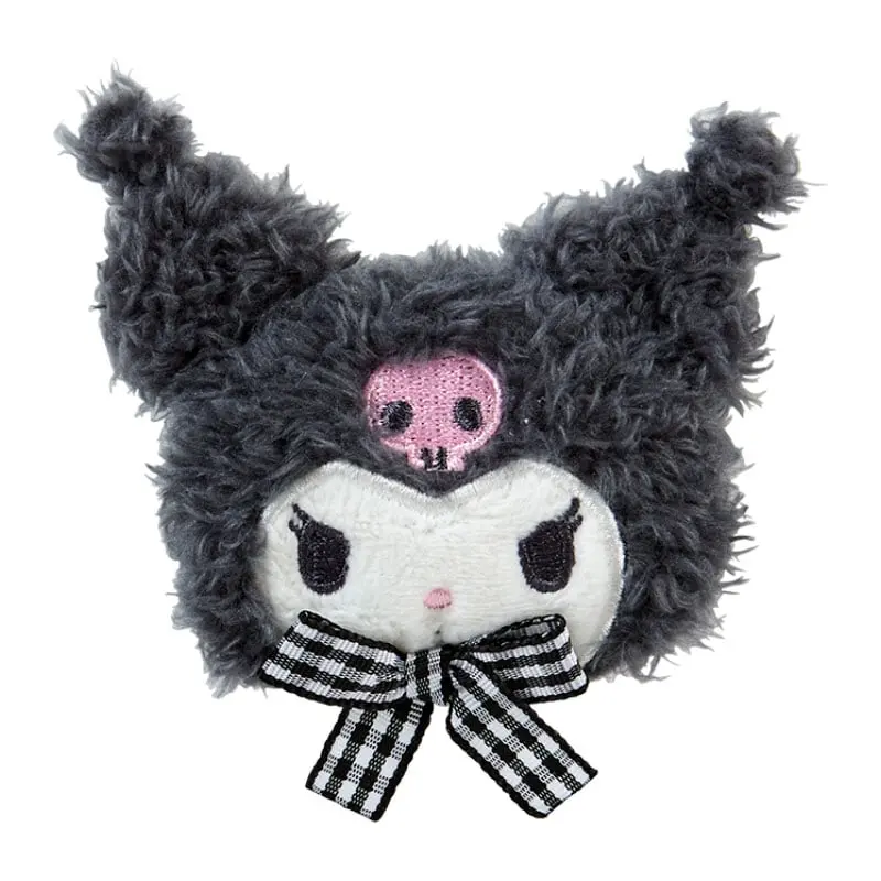 5. Kuromi Plush Hair Clip (Gingham Bow)