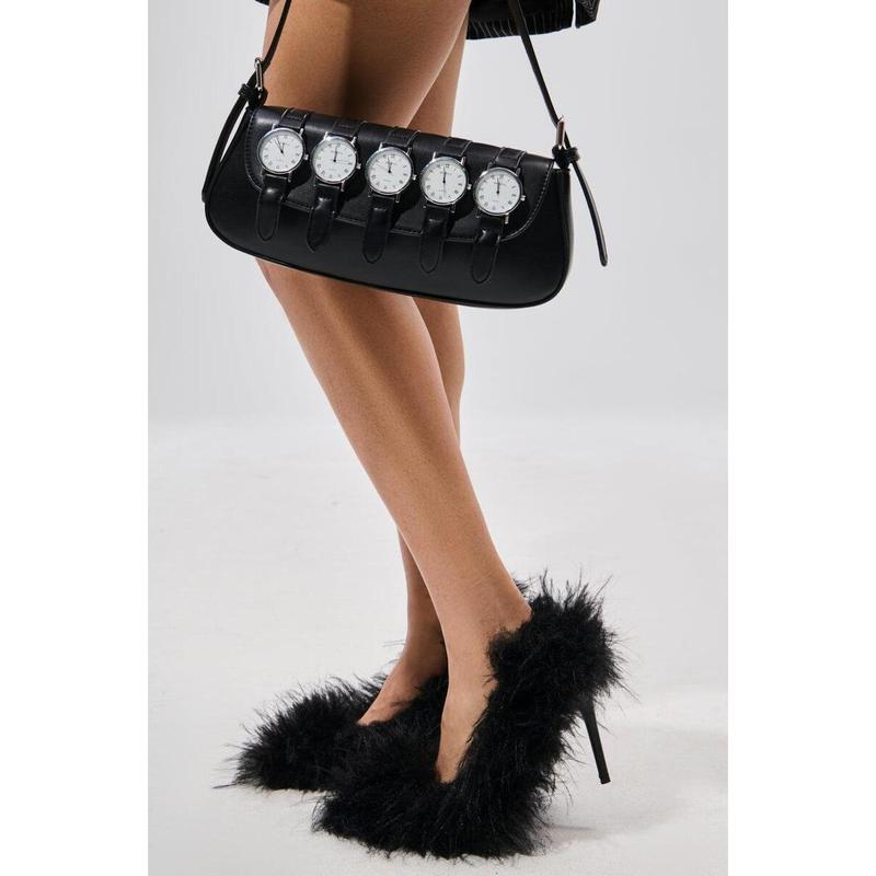 5. AZALEA WANG KURT BLACK FUR EMBELLISHED PUMP