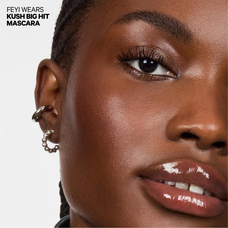 KUSH Big Hit is a clean buildable volumizing mascara for dramatically fuller, thicker-looking lashes that won't flake, clump, smudge, or droop for up to 12 hours. Its crisscross bristles catch + coat every lash in weightless cloud-like fibers for instant light-as-air volume + lift that lasts all day. Dial it up as much as you want because conditioning hemp seed oil helps lashes stay soft + nourished—never stiff.
