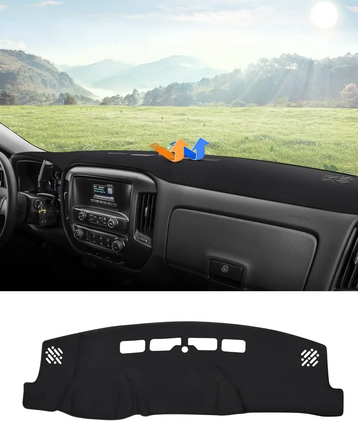 ·Custom Fit: With exact cutouts for your dashboard sensors and vents,this dashboard cover is specifically made for 2014 2015 2016 2017 2018 Chevy Chevrolet Silverado/GMC Sierra 1500, 2015 2016 2017 2018 2019 Silverado/GMC Sierra 2500HD 3500HD.