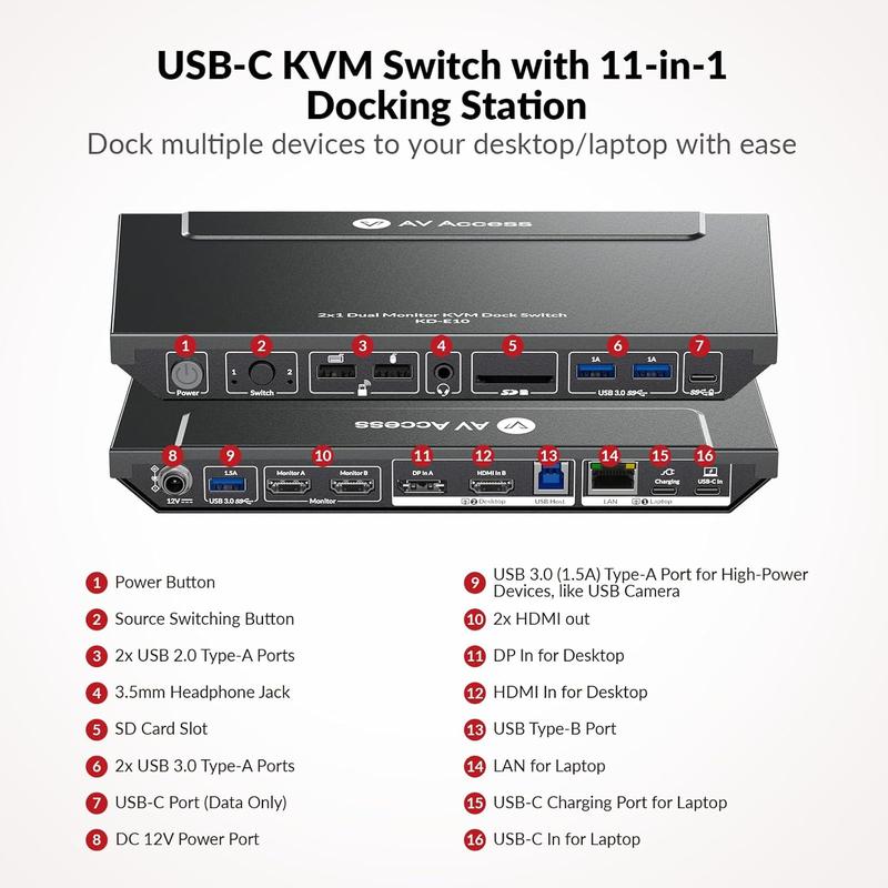 ● Versatile 11-in-1 Docking Station: Easily switch between two computers with a docking station that offers an array of ports, including 3x USB 3.0, 2x USB 2.0, 1x USB-C, SDXC card slot, 3.5mm headset jack, and two HDMI outputs. Perfect for building a powerful workstation at home or in the office.