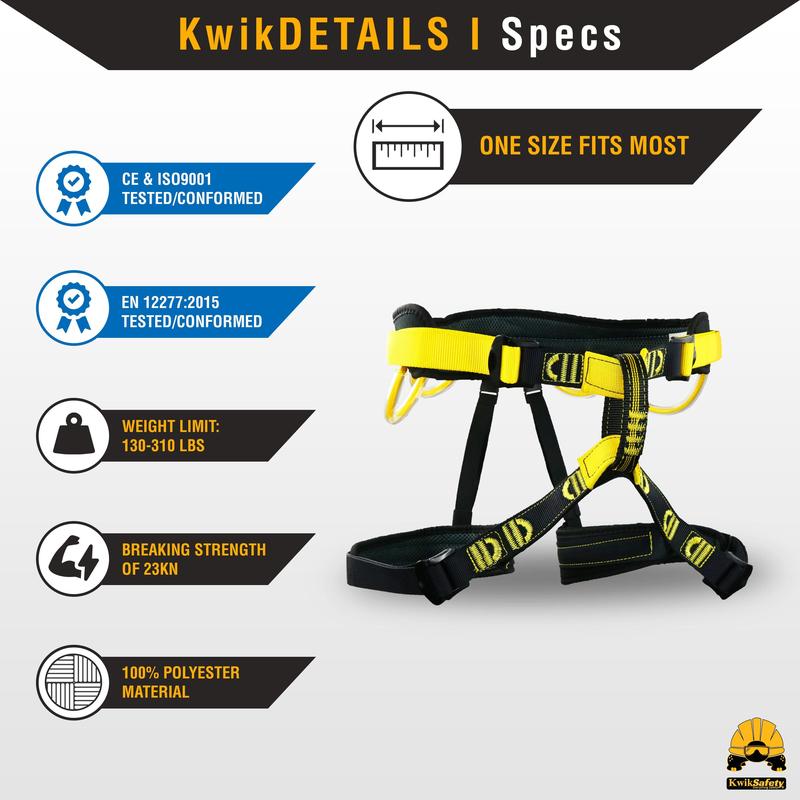 Introducing the KwikSafety Mandrill Half Body Climbing Harness, model number KS6608. This reliable climbing gear is crafted with durable, 100% premium polyester webbing for maximum support and safety. Designed for both climbers and outdoor enthusiasts, this harness is perfect for a variety of activities, including indoor rock climbing, outdoor rock climbing, and tree climbing.