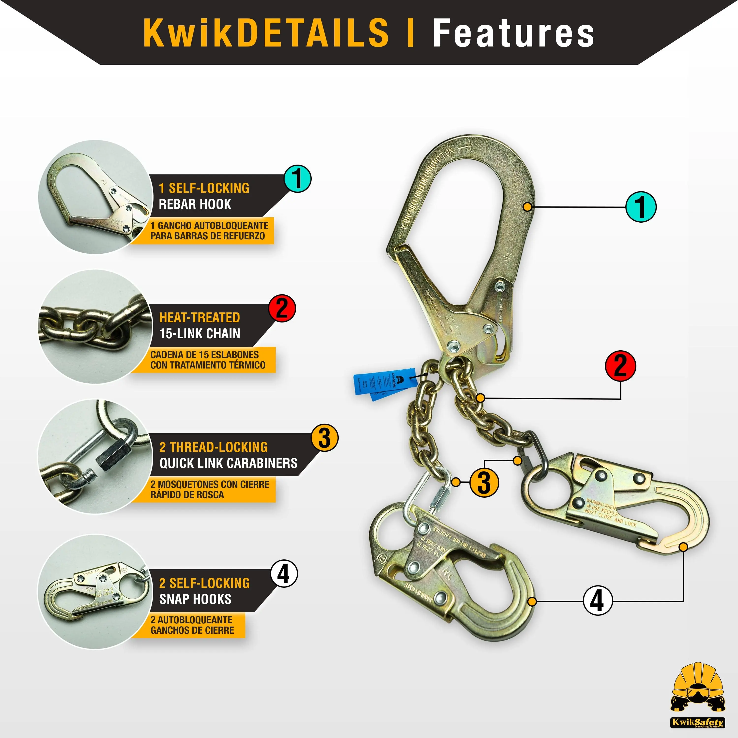 Enhance your safety and efficiency with the KwikSafety REBAR ROMEO 24" Rebar Chain Assembly (SELF-LOCKING HOOKS) ANSI OSHA Lightweight Steel Positioning Safety Lanyard. This reliable and versatile tool is an essential addition to your safety gear, designed to support your work tasks while ensuring compliance with industry standards.