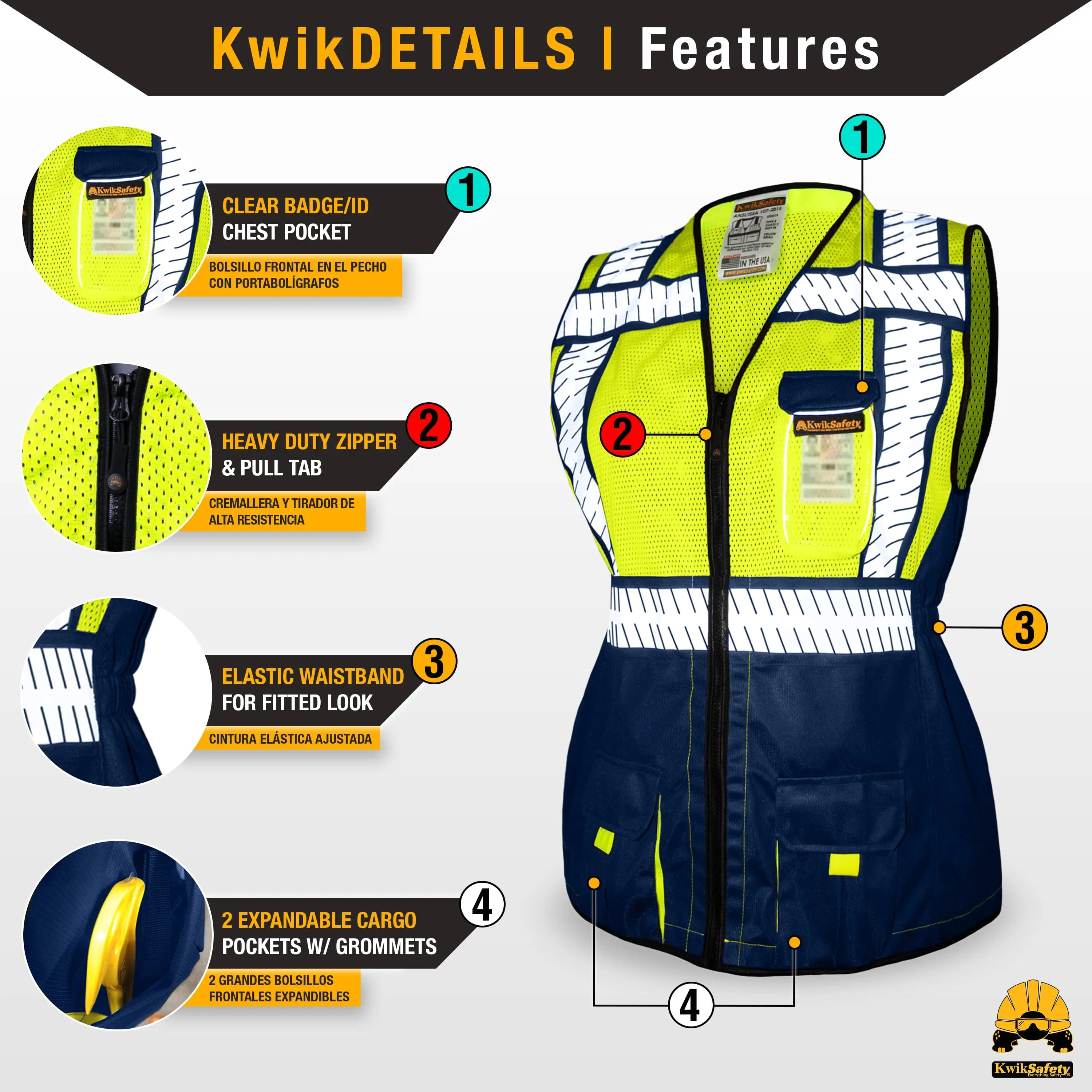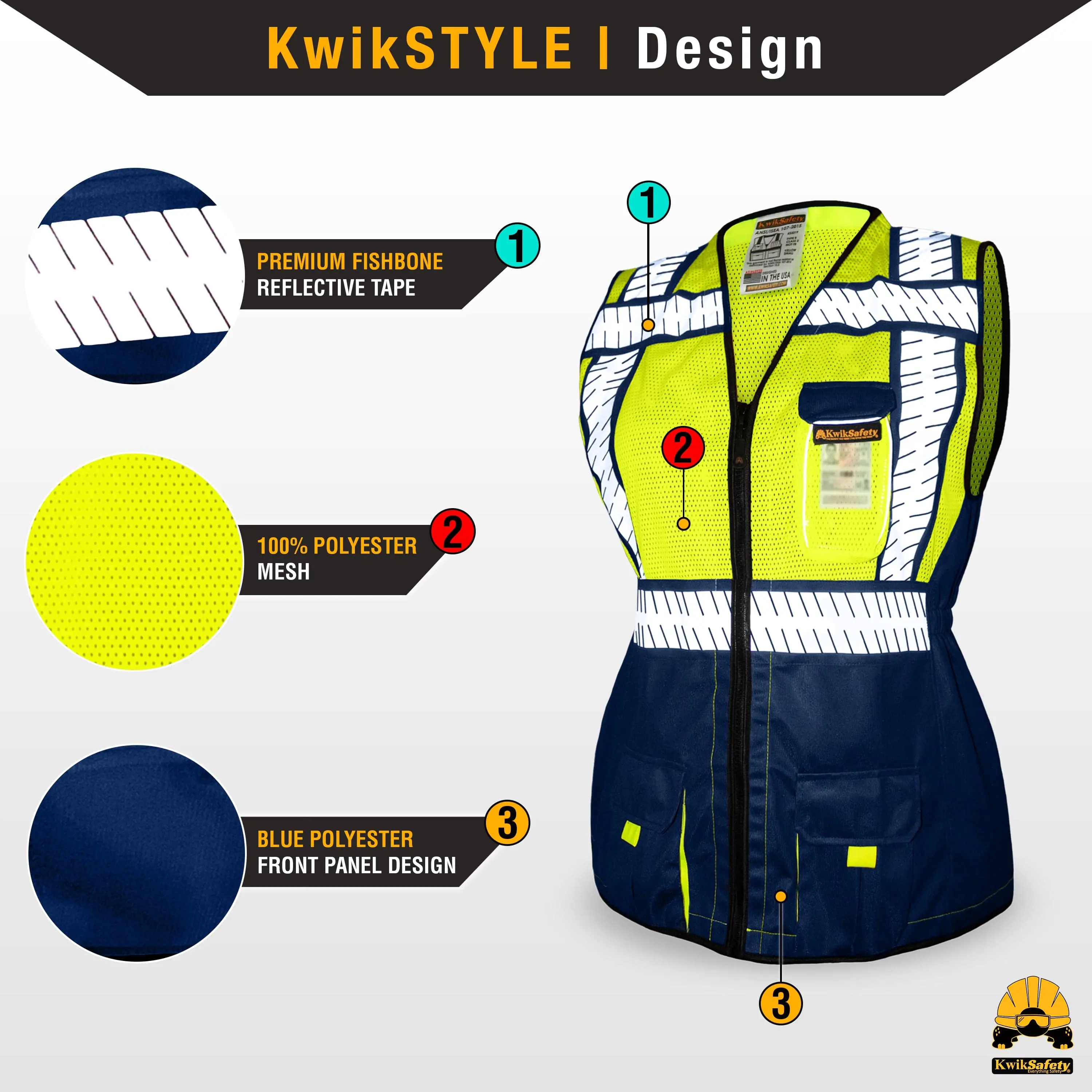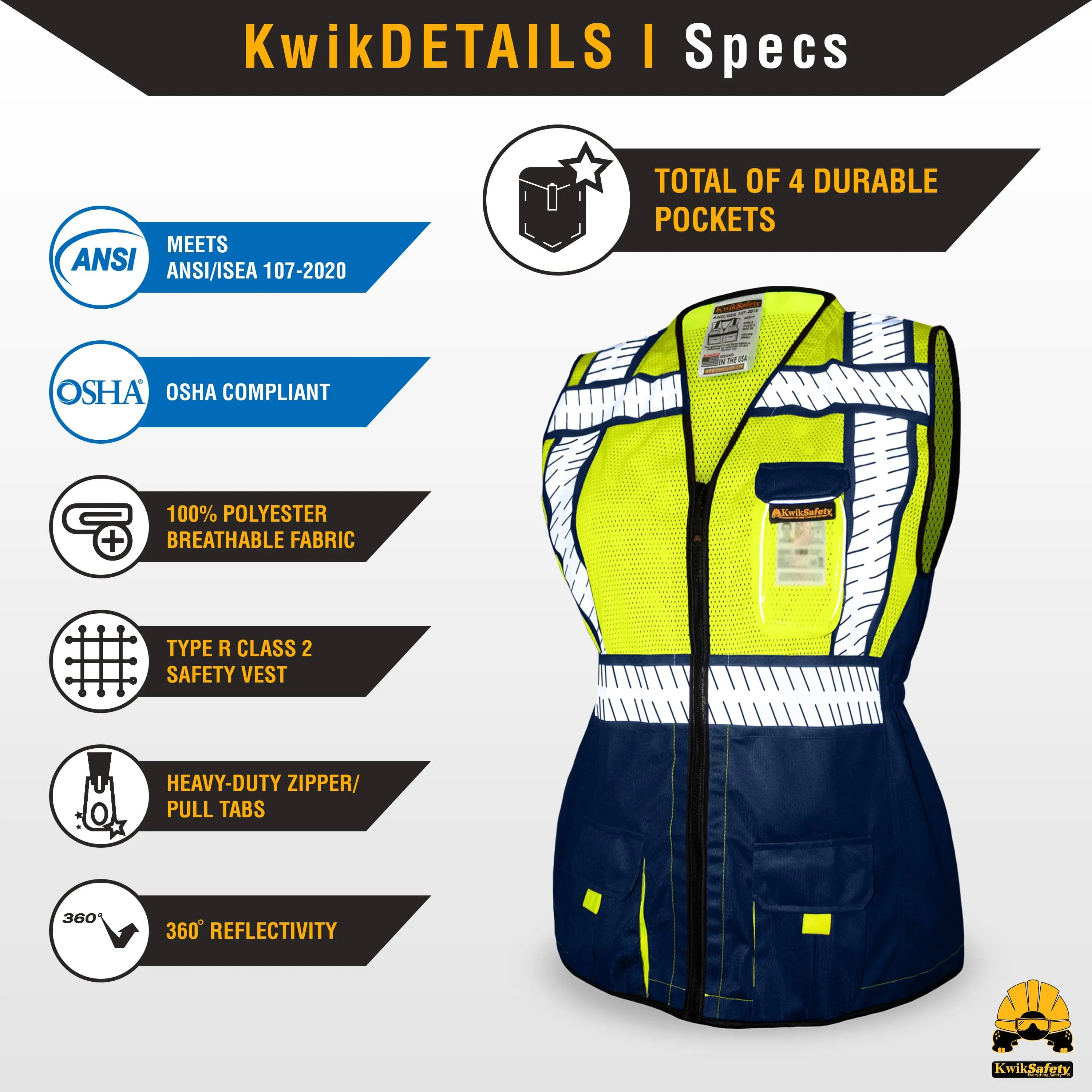 Stay safe and stylish with the KwikSafety SHERIFF Class 2 Safety Vest for Women, model number KS3338.