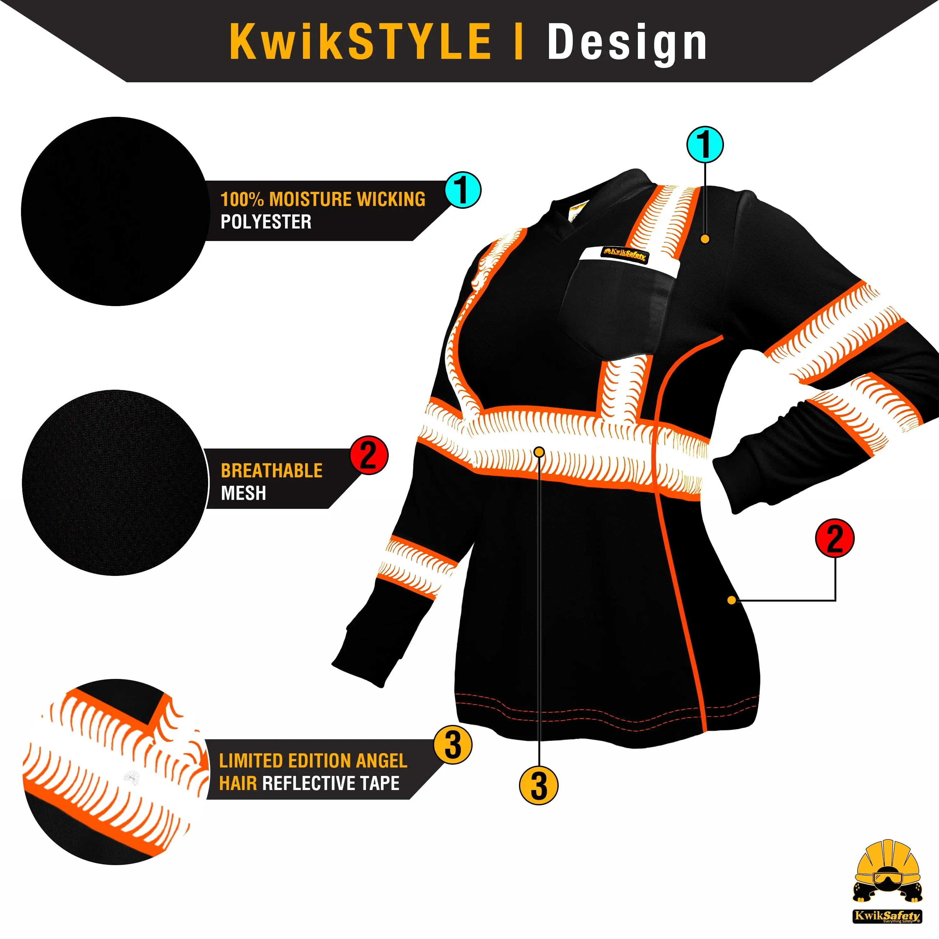 KwikSafety VIXEN Safety Shirt for Women (ANGEL HAIR TAPE) Long Sleeve Hi Vis Reflective Gear