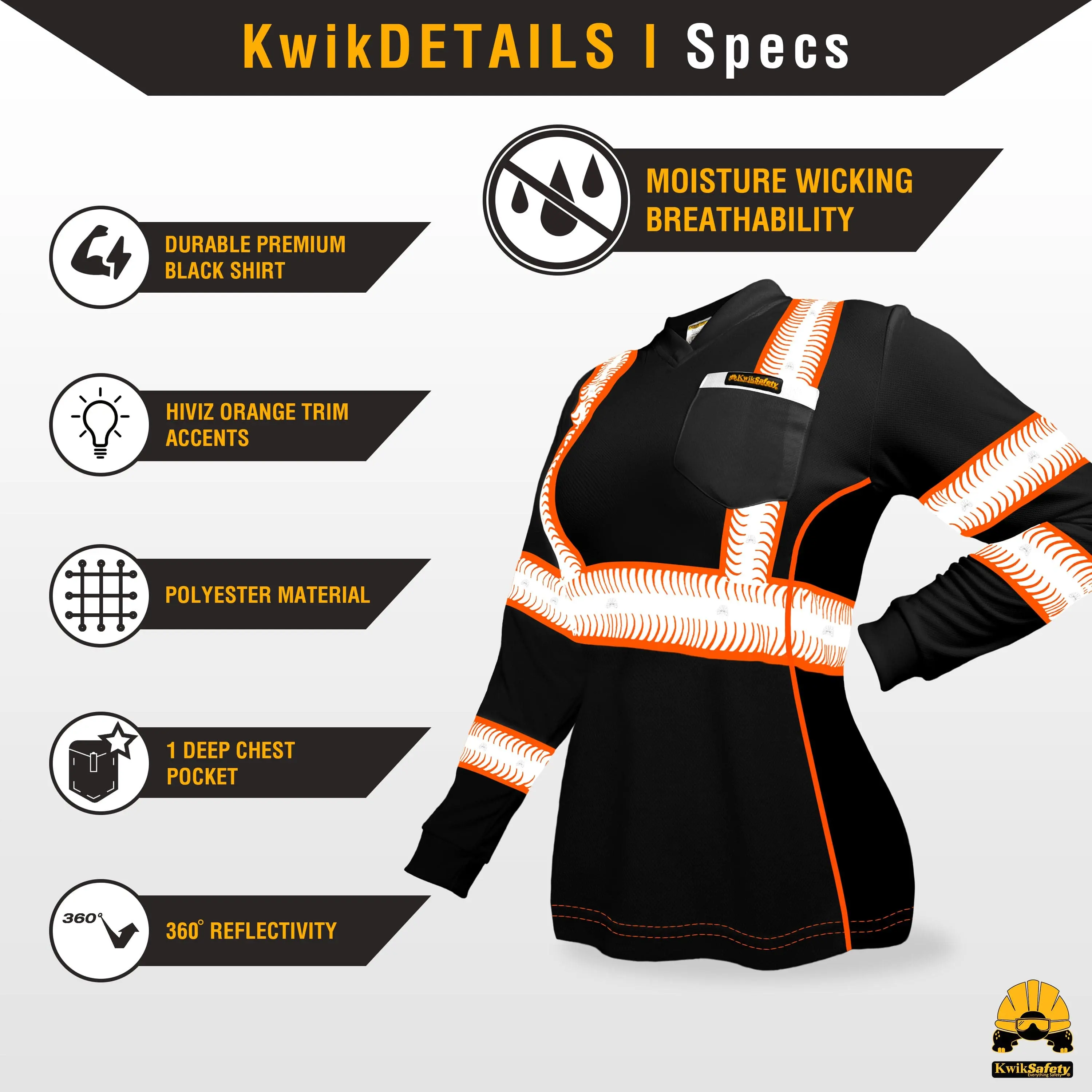 Elevate your safety and style with the KwikSafety VIXEN Safety Shirt for Women. This long sleeve hi vis reflective shirt is designed for women who need safety but want a premium product.