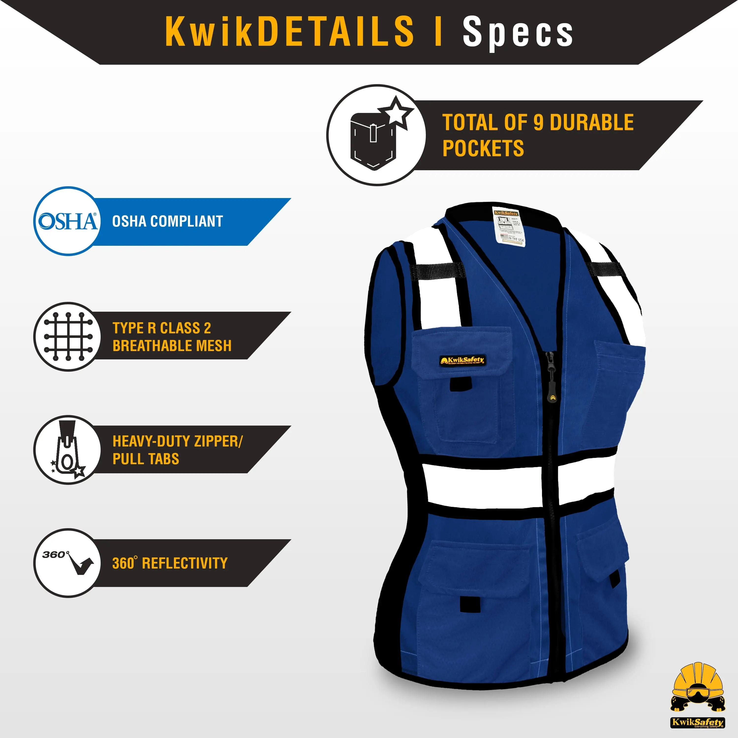 Experience the perfect blend of comfort, safety, and style with the KwikSafety BLUE LADY Safety Vest. Whether you're working in construction, emergency services, or other demanding environments, this vest is designed to meet your safety needs with style.
