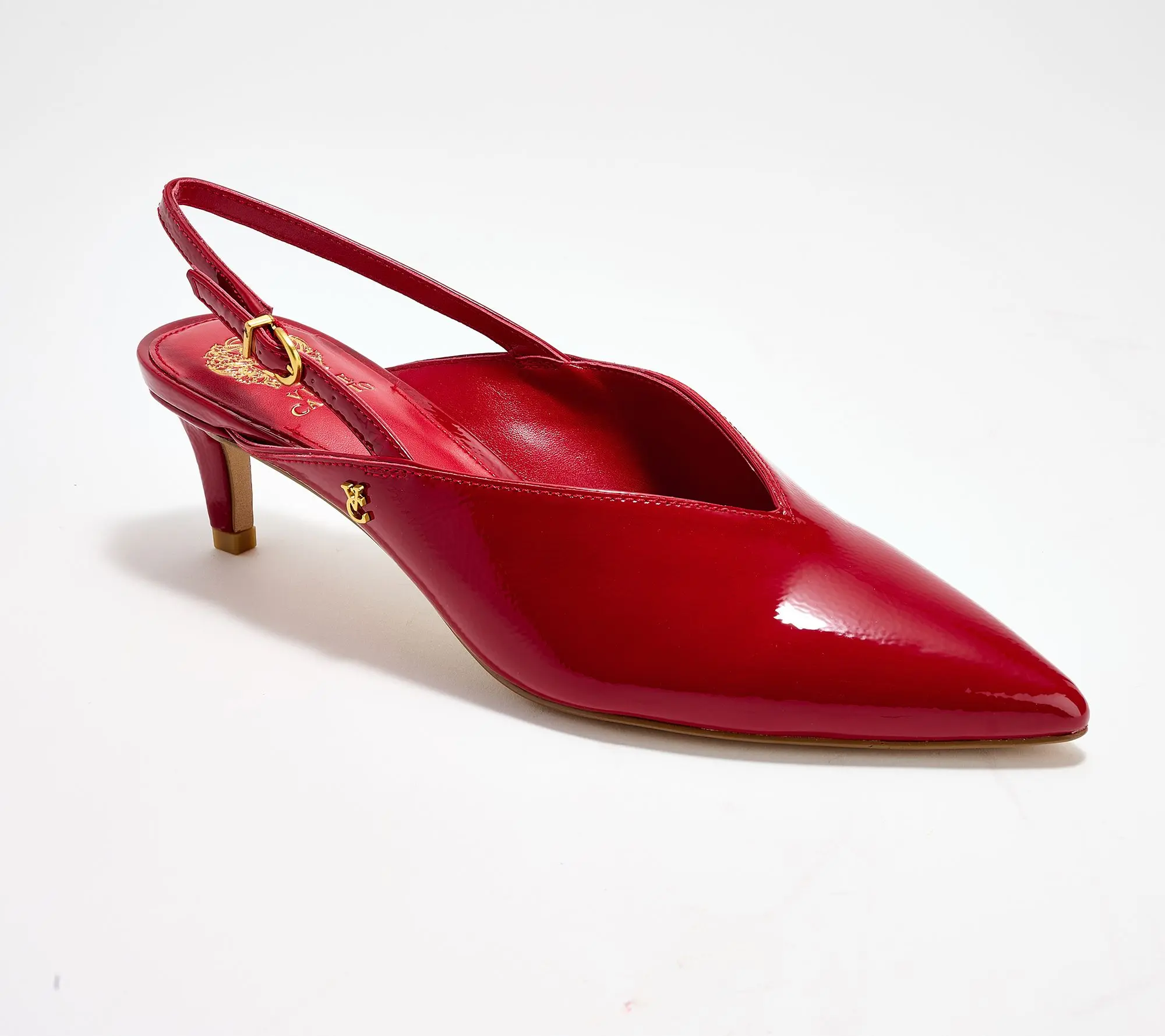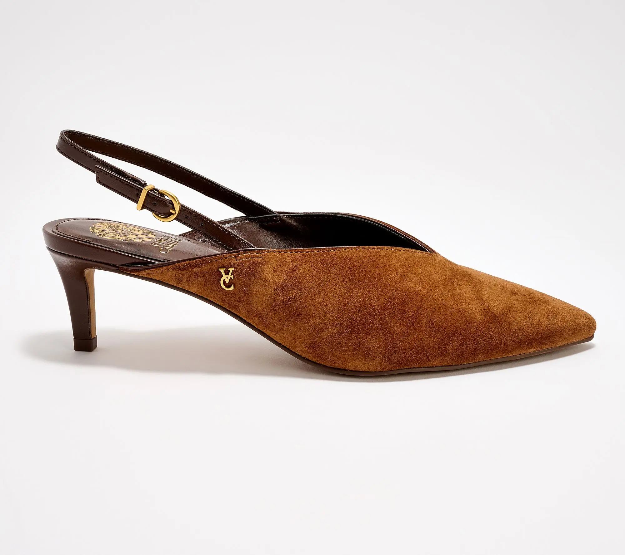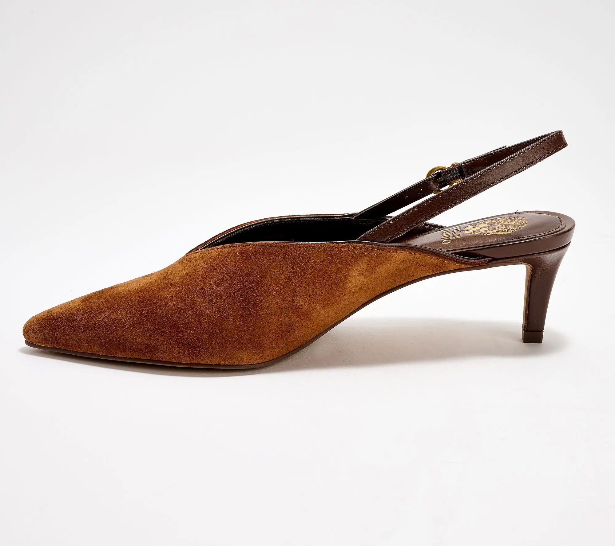 Style points. Weekend brunches or weekday presentations call for the Kylien from Vince Camuto.These sleek slingbacks features a softly pointed toe for an elegant edge, while the adjustable buckle lets you find the right fit for any occasion. A cushioned insole and sturdy wrapped heel offer support along with a stylish aesthetic, whether you opt for denim or a dressier look. From Vince Camuto.
