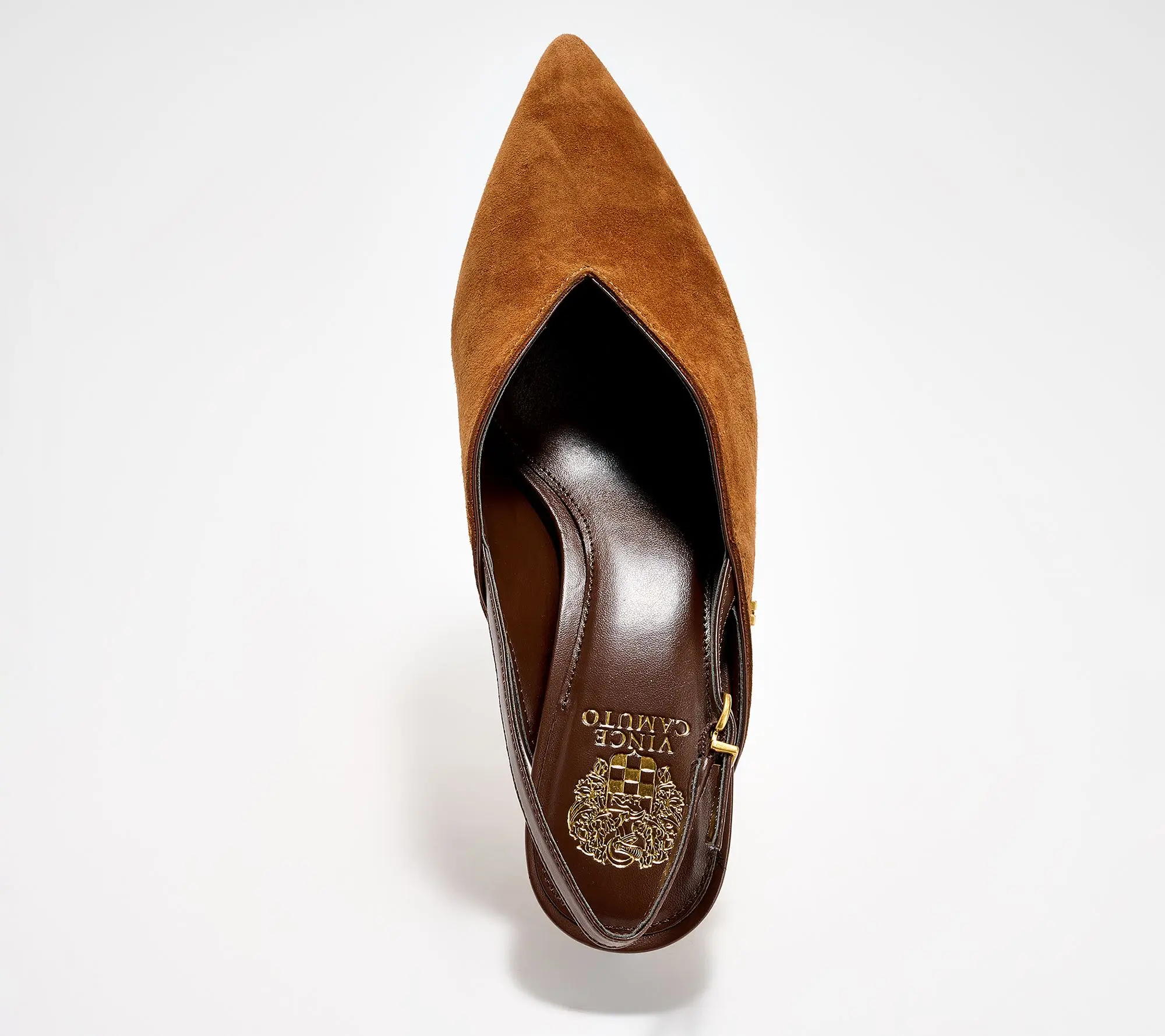 ·Suede or leather upper, pointed toe, slingback strap with adjustable buckle