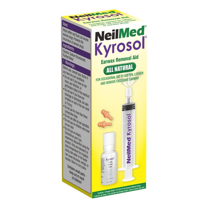 helps soften and flush out excess earwax plugs and prevents the recurrence of earwax plugs. Kyrosol® is also used to dissolve and flush out hard, dry, or impacted wax build-ups.