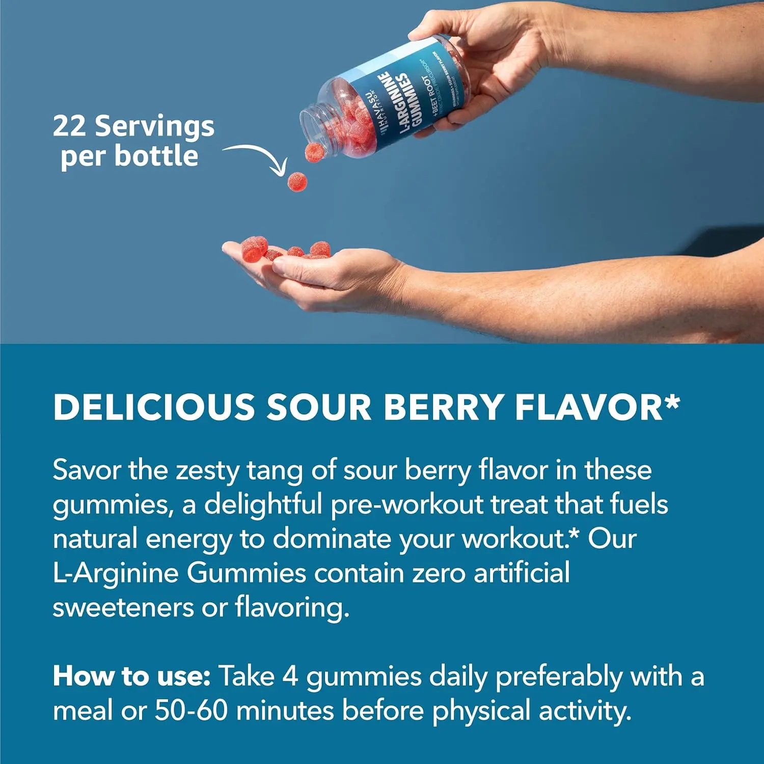 ·ENERGIZING SOUR BERRY FLAVOR: Enjoy the tangy burst of sour berry flavor in our l arginine l citrulline supplement, making these gummies a delicious pre-workout treat that provides the energy you need to conquer your workout sessions.