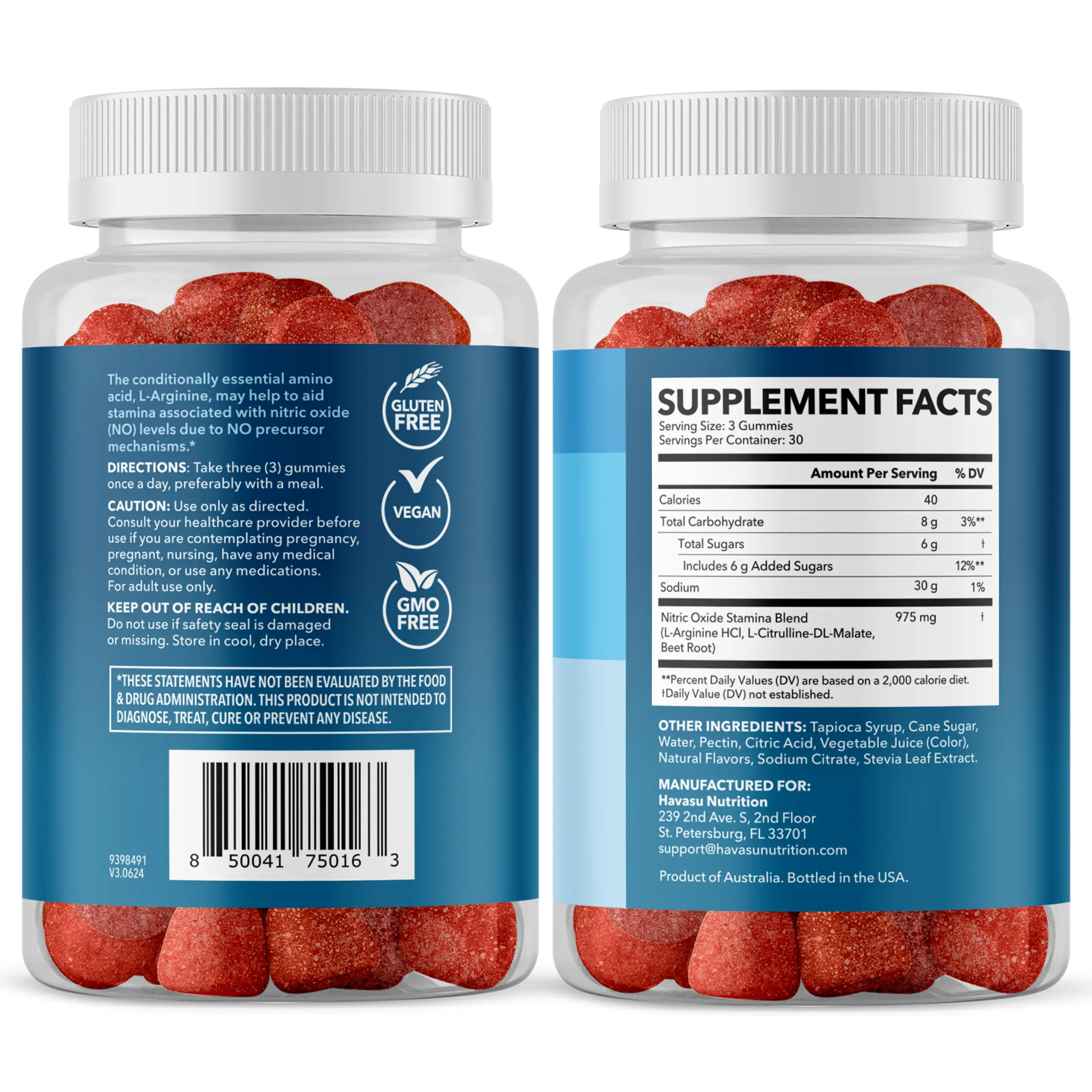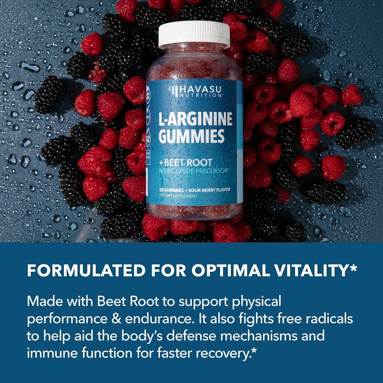 ·L-ARGININE FOR MEN AND WOMEN: Power-packed with a nitric oxide supporting blend including L-Arginine HCI, L-Citrulline, and Beet Root, our gummies are designed to support energy production, endurance and performance.