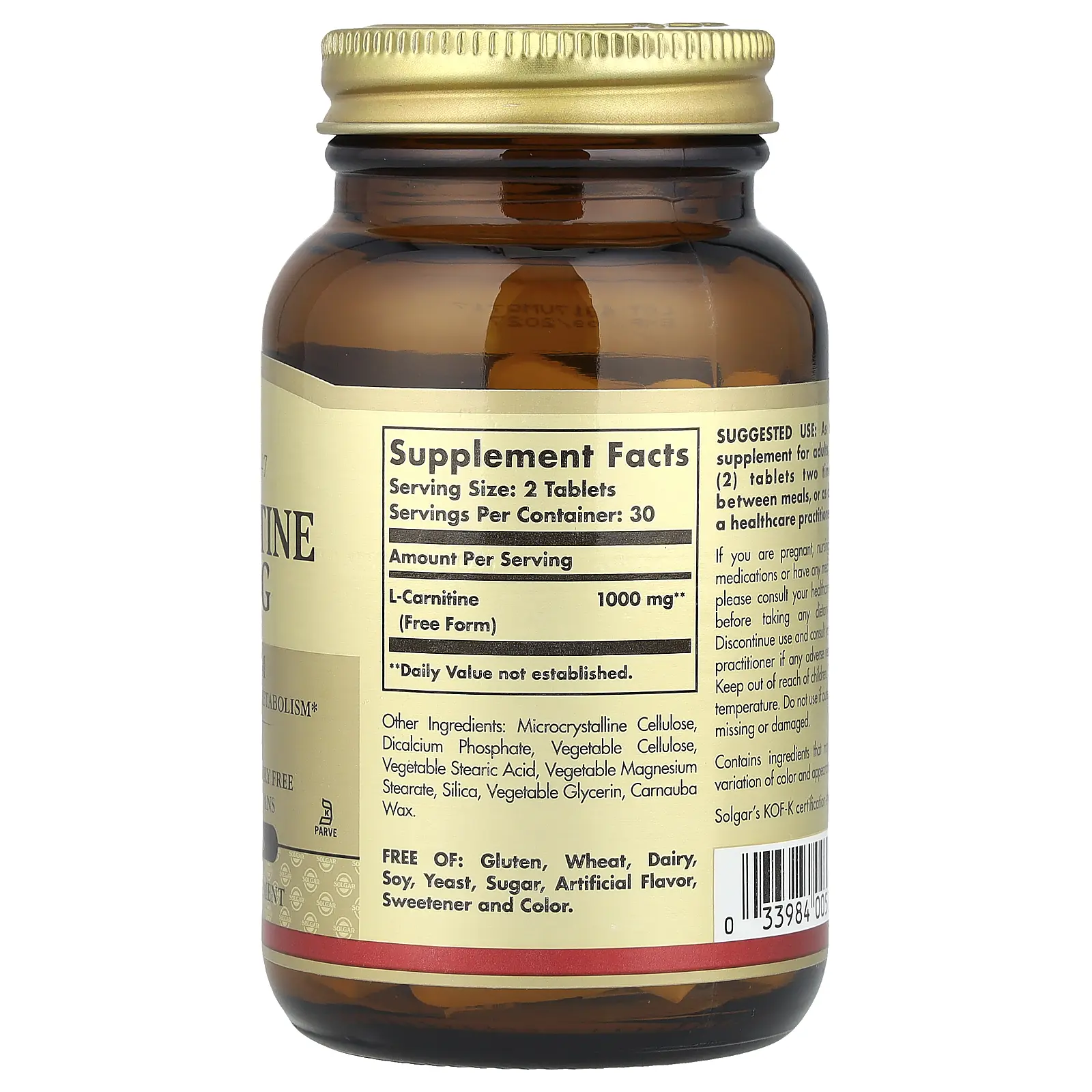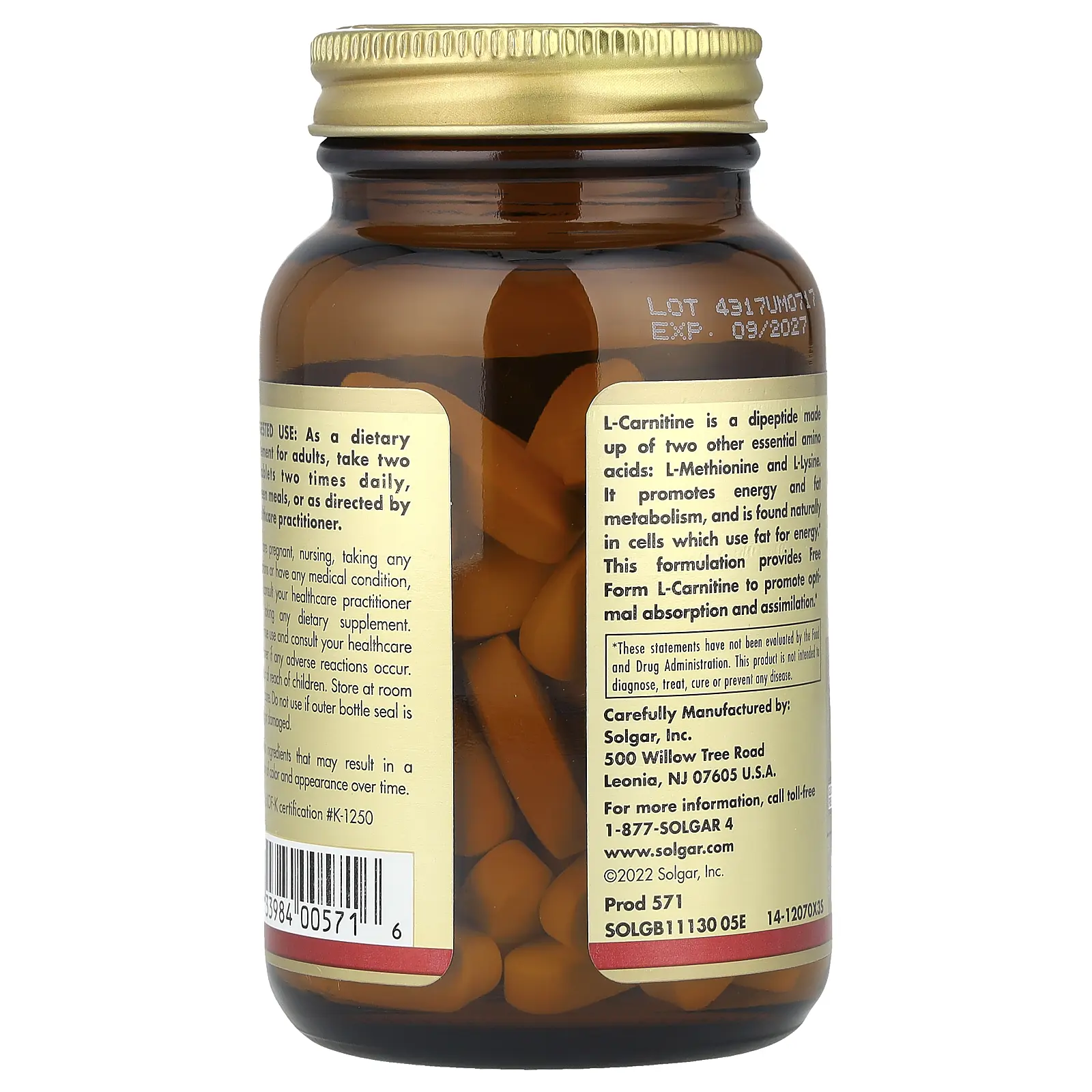 Solgar L-Carnitine, Free Form, 60 Tablets (500 mg per Tablet)