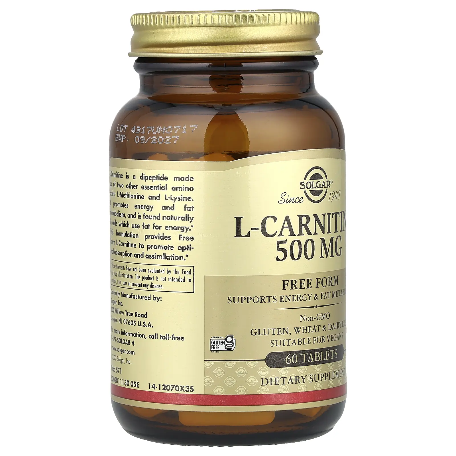 5. Solgar L-Carnitine, Free Form, 60 Tablets (500 mg per Tablet)