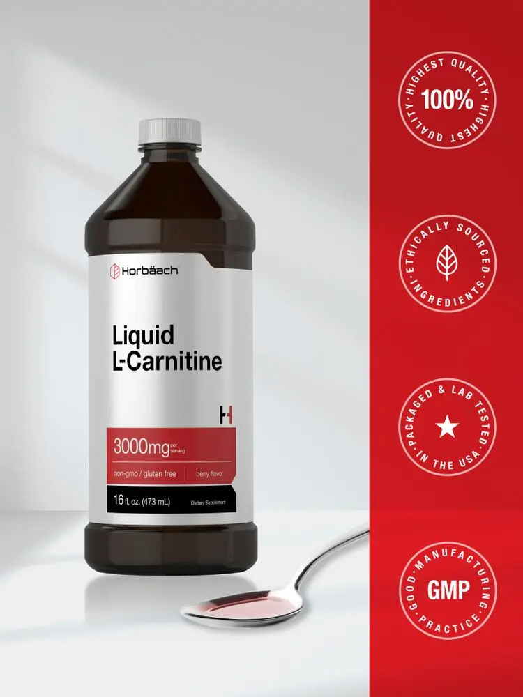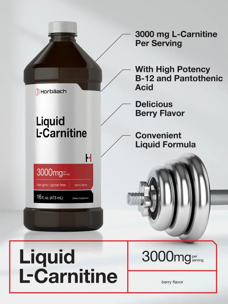 5. Horbäach L-Carnitine Liquid 16 oz | 3000 mg | Berry Flavor | Vegetarian Formula | Non-GMO, Gluten Free Supplement