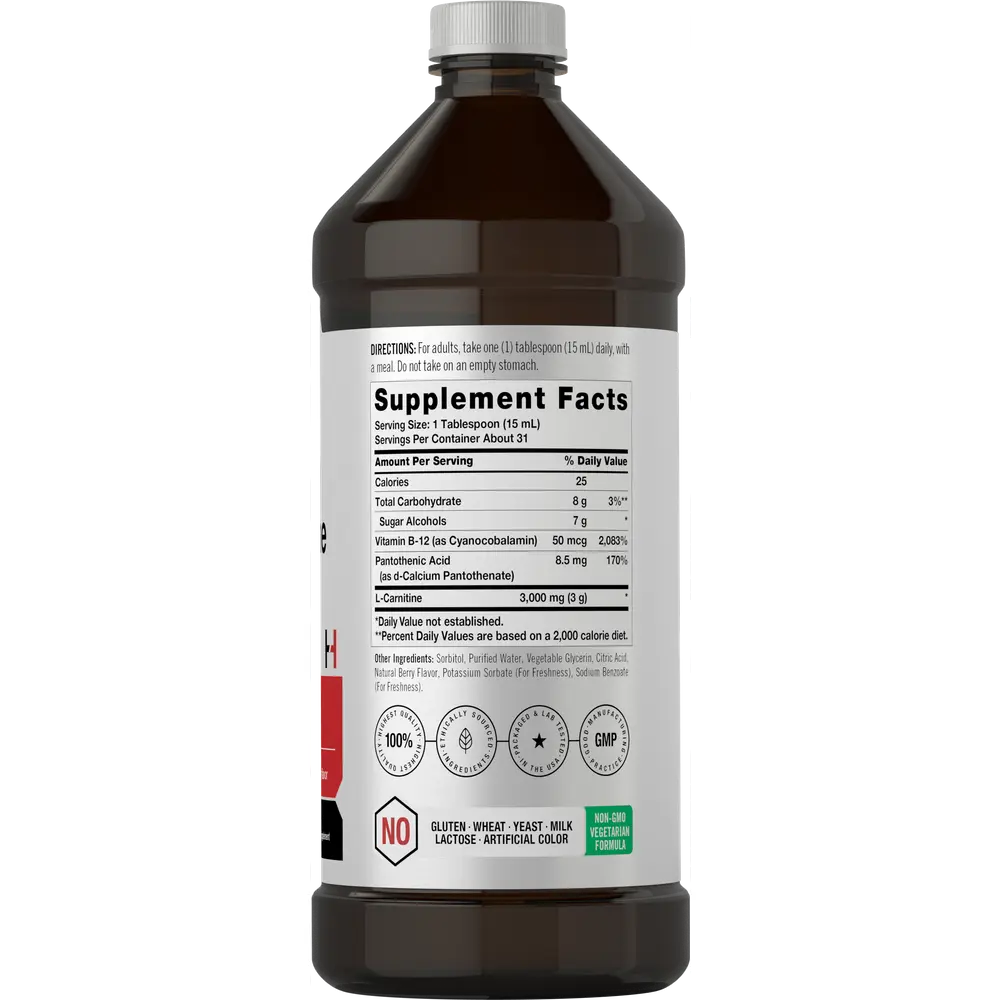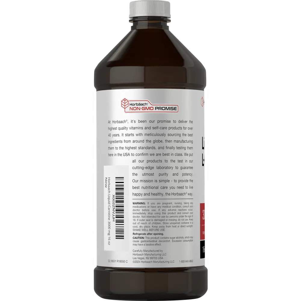 Horbäach L-Carnitine Liquid 16 oz | 3000 mg | Berry Flavor | Vegetarian Formula | Non-GMO, Gluten Free Supplement