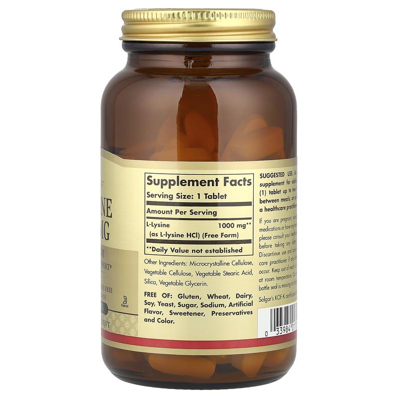 5. Solgar L-Lysine, Free Form, 1,000 mg, 100 Tablets