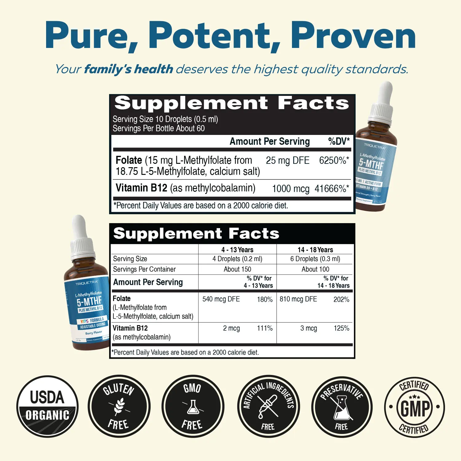 ·ADJUSTABLE METHYLFOLATE DOSING FOR ALL AGES: Designed with an age-appropriate, customizable dose to meet the needs of growing children and adolescents.
