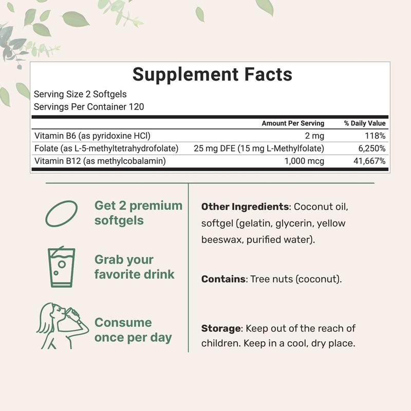 ·Each pouch includes 240 softgels, with 2 softgels per serving, providing a 120-day supply of advanced B vitamin replenishment over time.