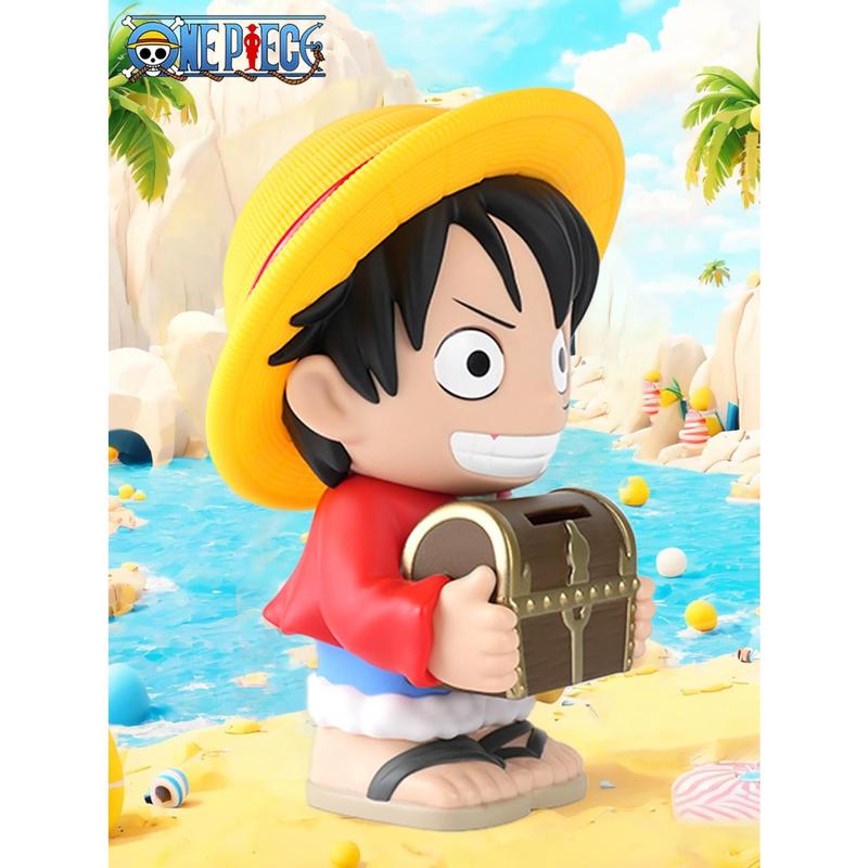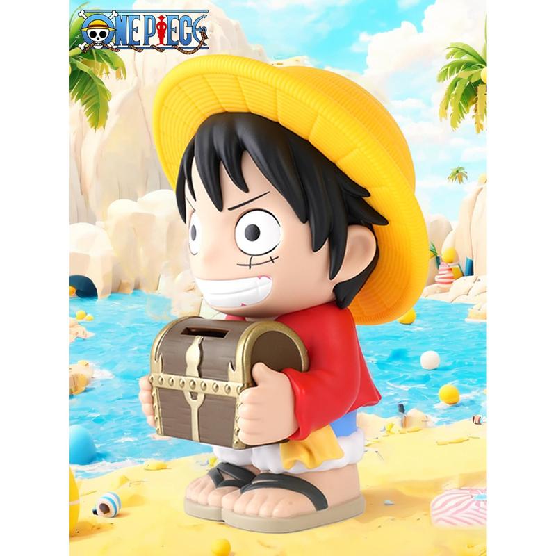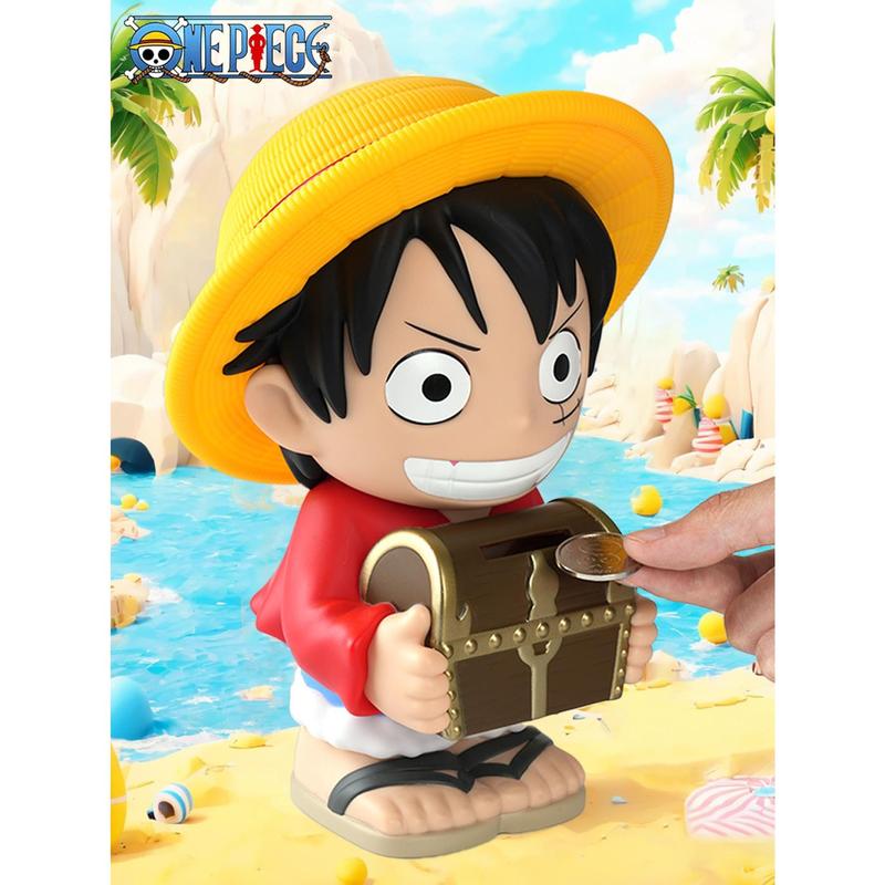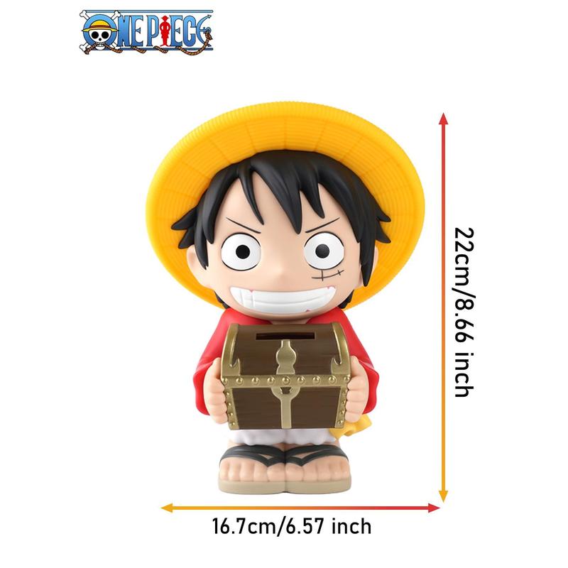 L-One Piece Officially License Luffy Figural Bank Piggy Bank Accessories Coin Bank PVC High Quality Anime Movie Peripheral Collectible Merch Home Bedroom Desktop Decoration One Piece Decor Birthday Gift for Fans