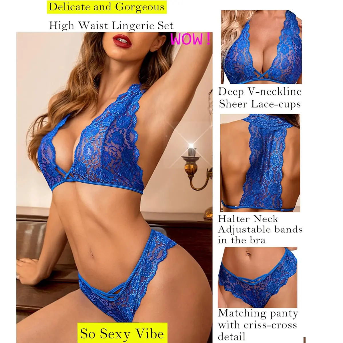·Brand : Avidlove hot lace lingerie bra and panty sets and thong set, matching bra and panty sets, strappy lace halter bra top and matching panty, hollow floral lace lingerie set for women.