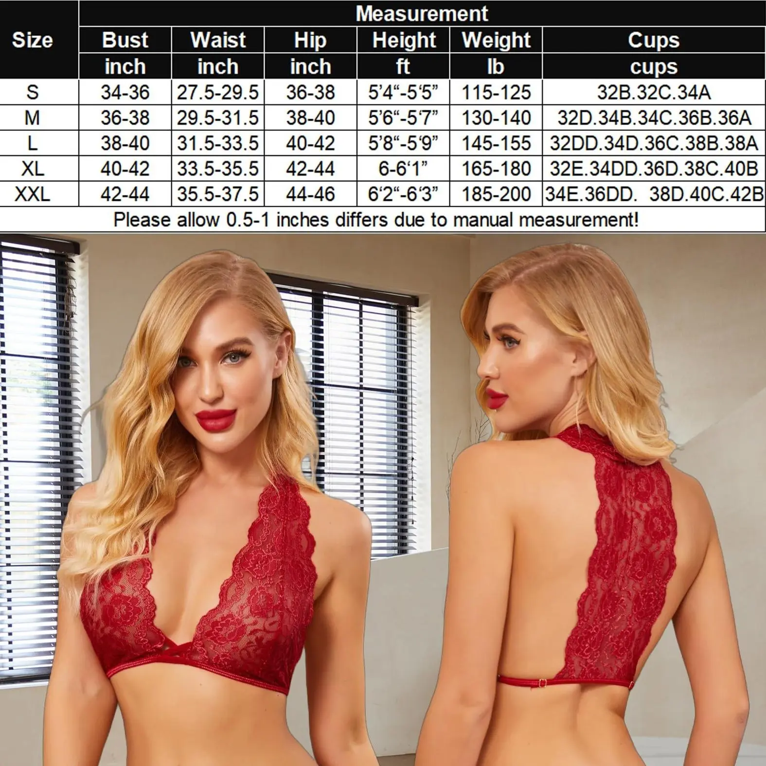 ·Package Content: 1 x Women Lace Bra and Panty set, please check US size to choose your right size, this lace lingerie set is a little larger than normal size, we recommend you to choose one size down.