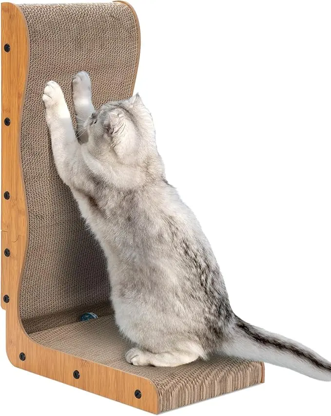 ·Protect Your Furniture and Save Space: The vertical L-shaped design lets you position the scratcher against walls or furniture, shielding your couches and chairs. The versatile double-sided L-shaped cardboard cat scratcher provides cats with more scratching surfaces, whether they prefers floors, walls, or slopes, meeting all their scratching needs