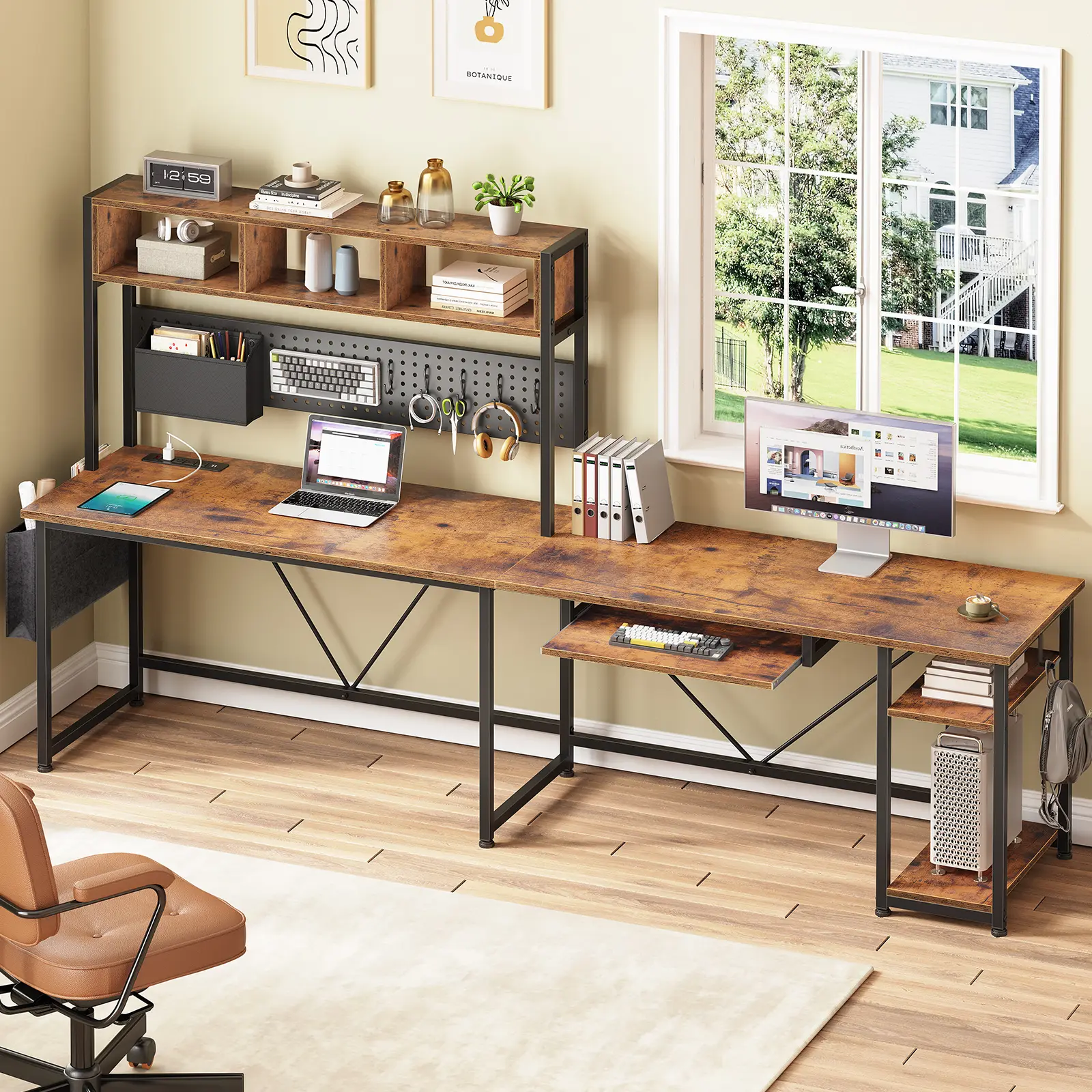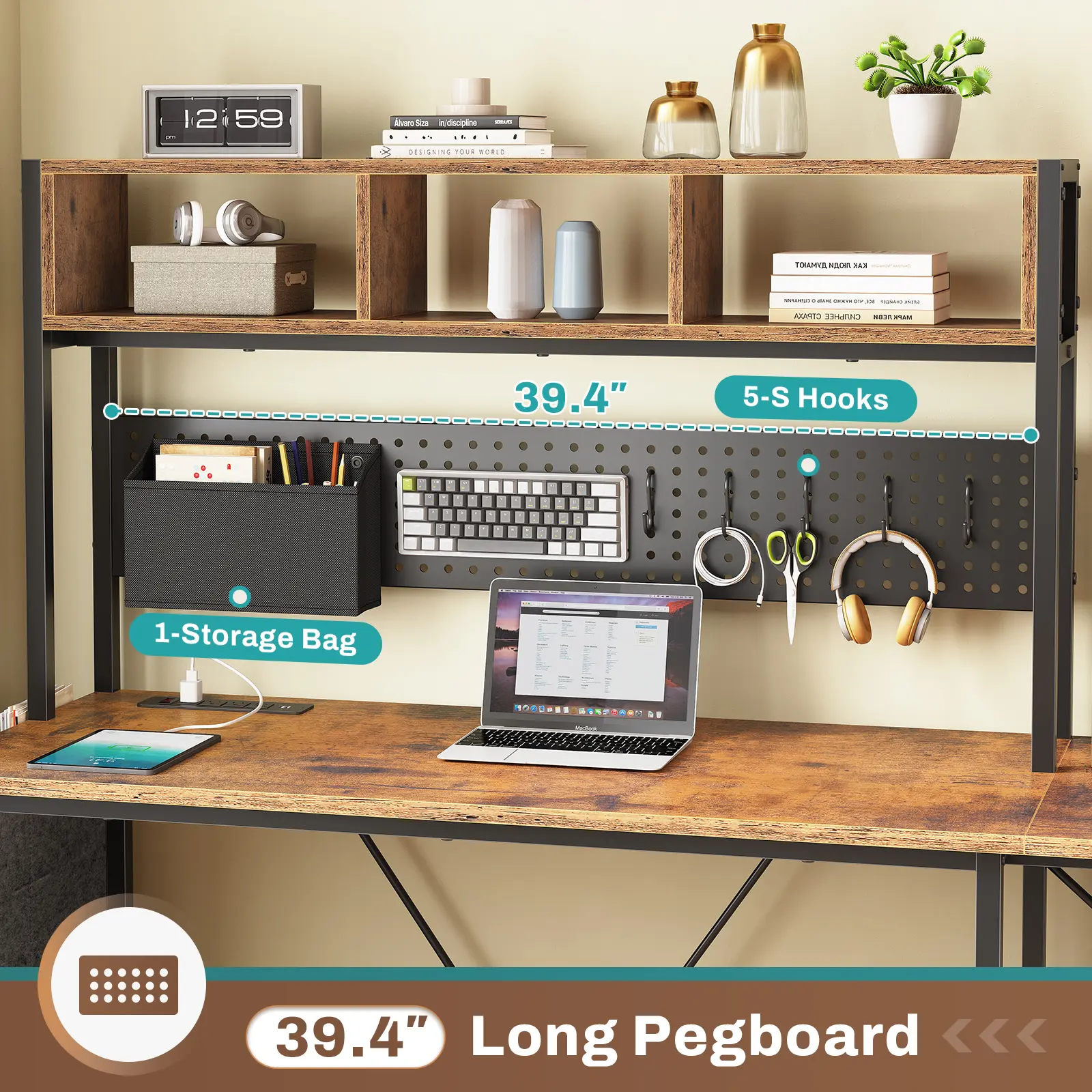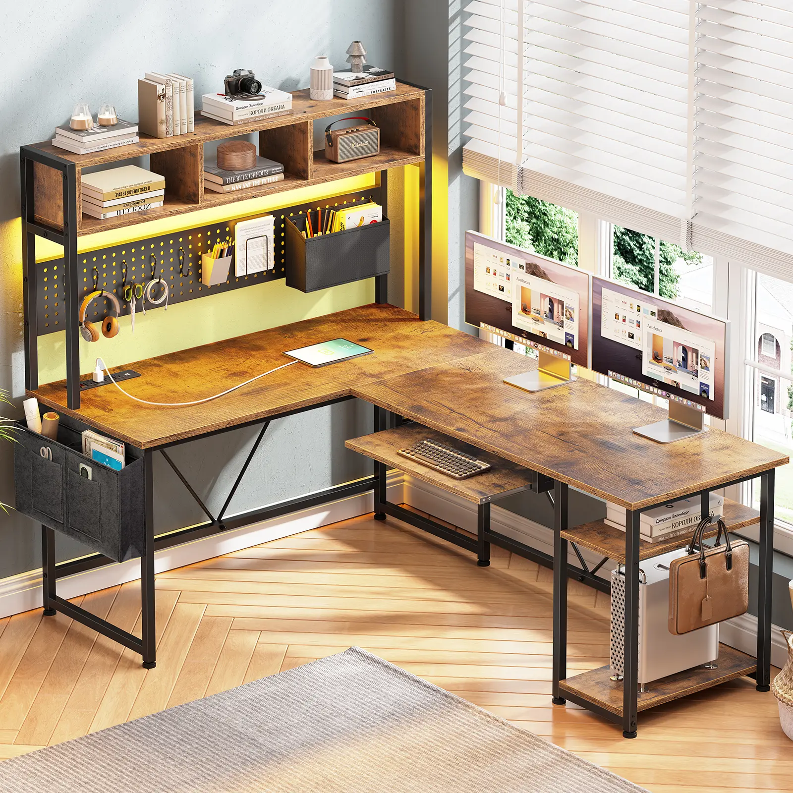 【Ample Storage Space】Coming with storage bag, pegboard, 2-tier open storage shelves, and keyboard tray, iron hook with powerful storage space. Top hutch can place files, books, leaving spacious space for writing, paperwork and other home office activities. This corner computer desk provides ample workspace and storage with its L-shaped design and hutch.