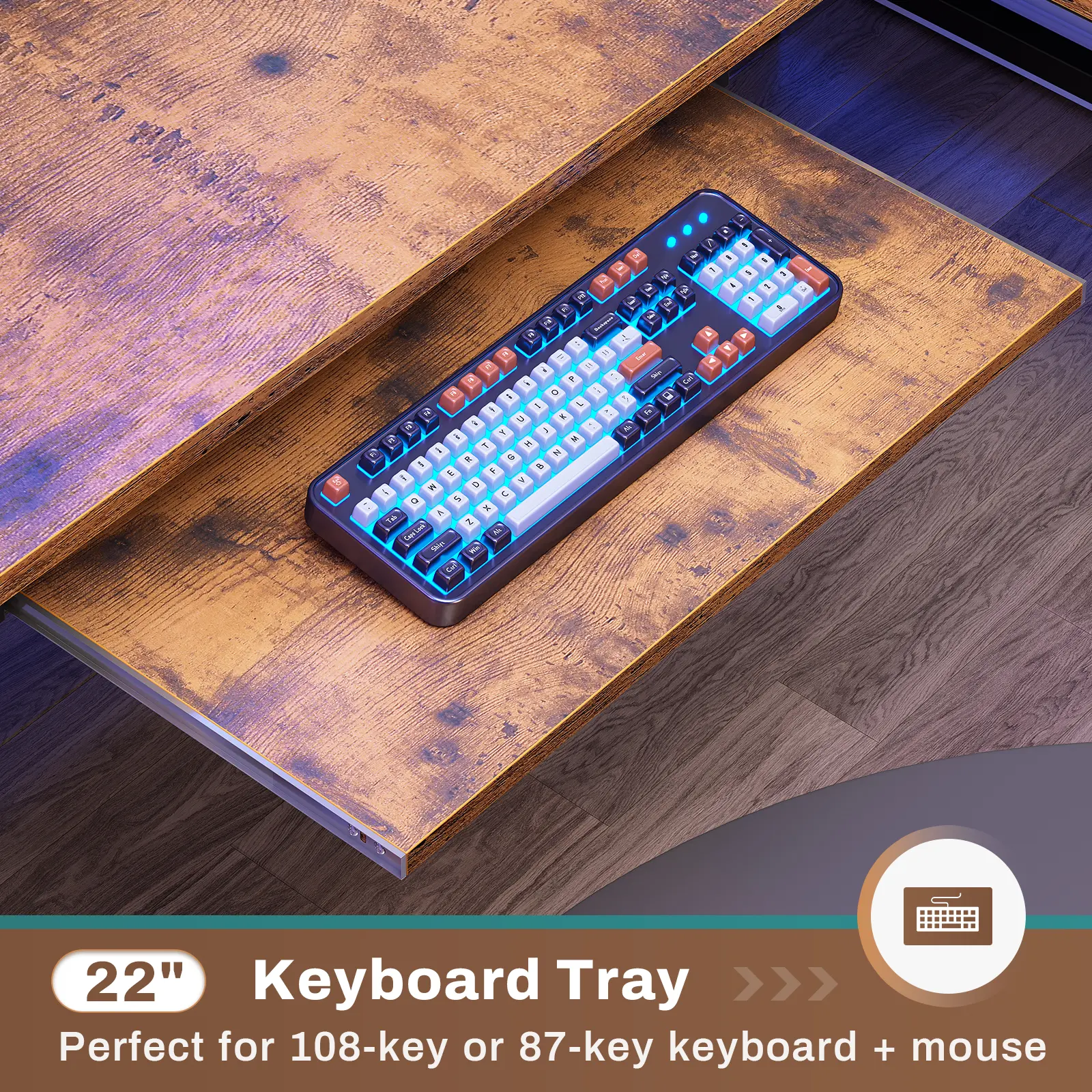 【Cool & Smart Led Light】The gaming desk comes with RGB LED light, remote control via APP, Over 60000 colors and 29 flashing modes for your to choose. Led lights with music sync function, built-in sensitivity adjustable mic, led light color will change with the rhythm of the sound and music. This l shaped gaming desk can meet you play games for your home offices.