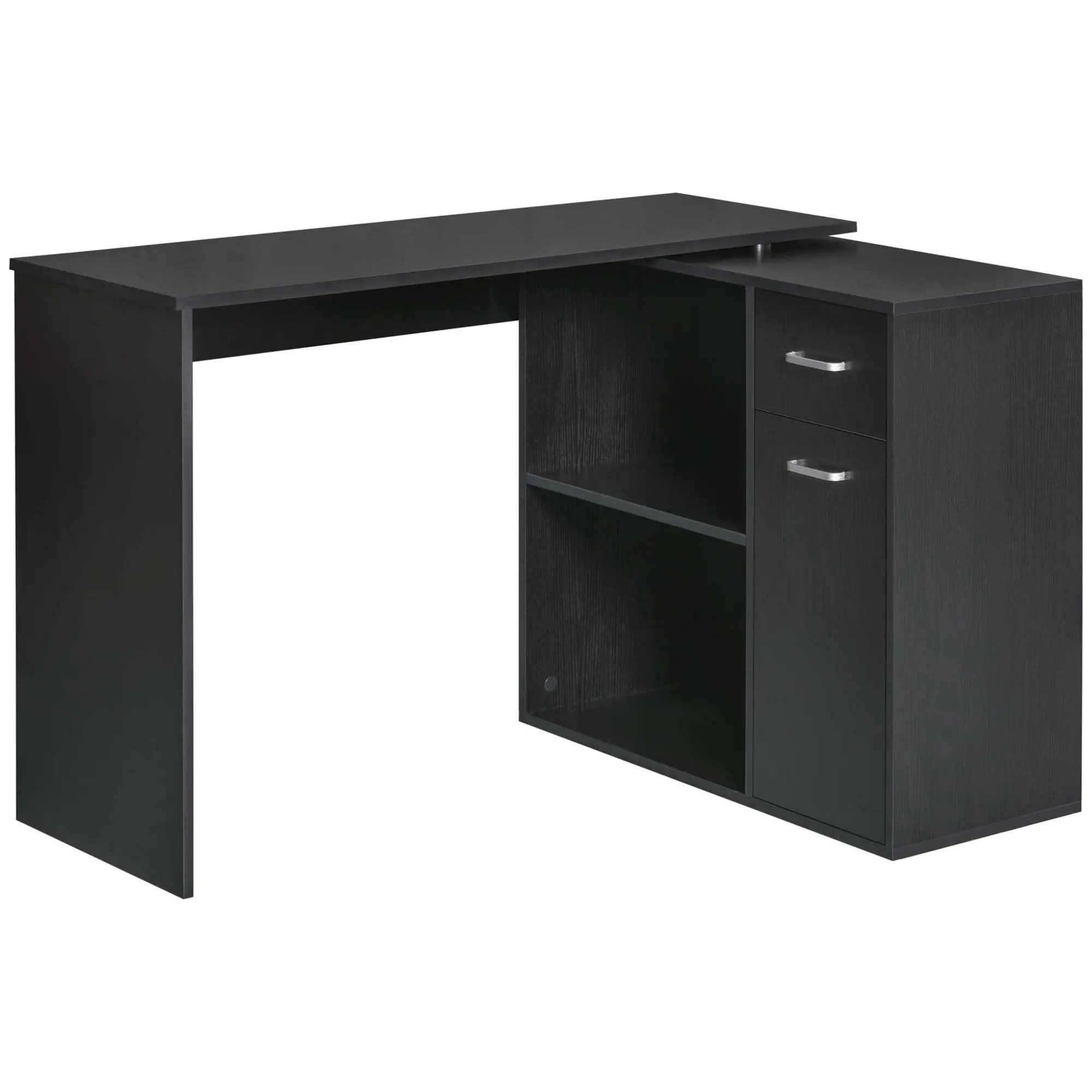 Did you get tired of messy desktop space? Come and have a look at this computer desk with storage. You will have a big desktop to put a laptop or computer to make your work more comfortable. Multiple shelves provide plenty of room for your stuff. Magazines, small plants, family photos, and various items can be put on shelves and provide a comfortable and relaxing environment. Add a stylish computer desk with shelves that simplifies your work and study time with class design and storage space