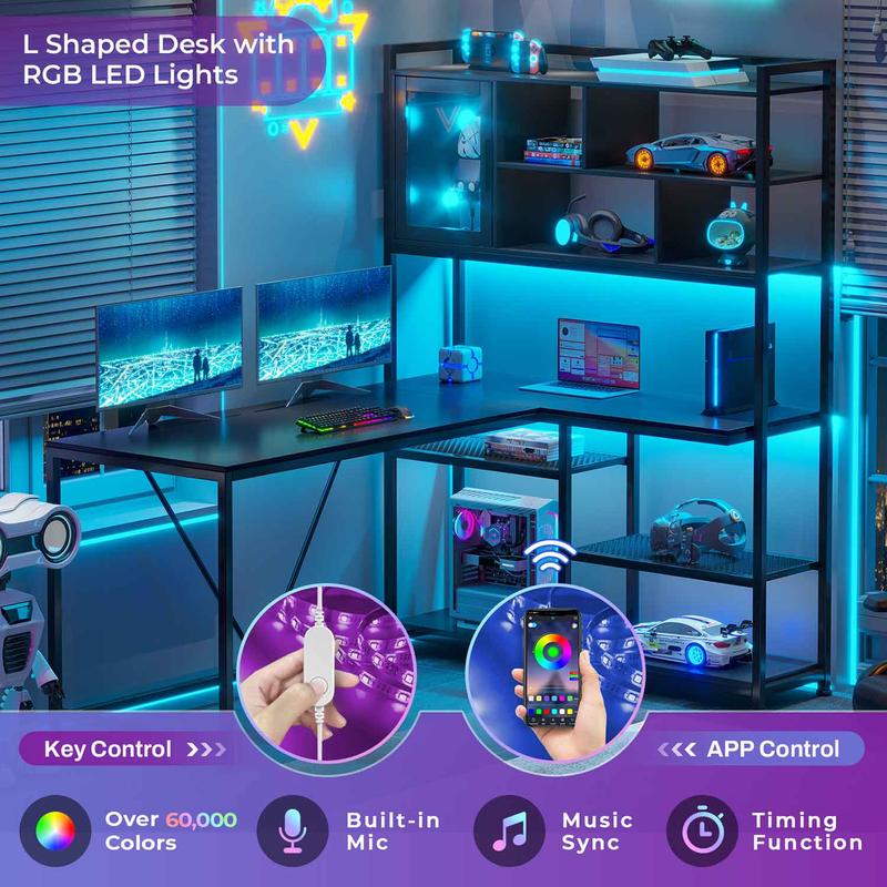 【Reversible Desk】With reversible design, this home office desk can be installed in 2 directions according to your needs. The L shaped computer desk could hold two desktop computers and one notebook computer. The desktop size is 58"L*21.6"W. The simple design and multi-function storage to meet all needs. An ideal desk for small rooms or limited spaces to create excellent home office space.