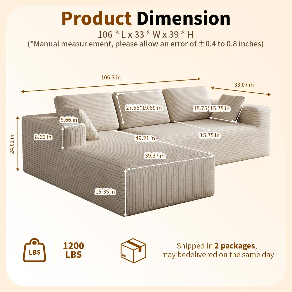 ·Versatile Design: This L-shaped convertible sofa offers multiple modules, allowing for flexible arrangement. 📐