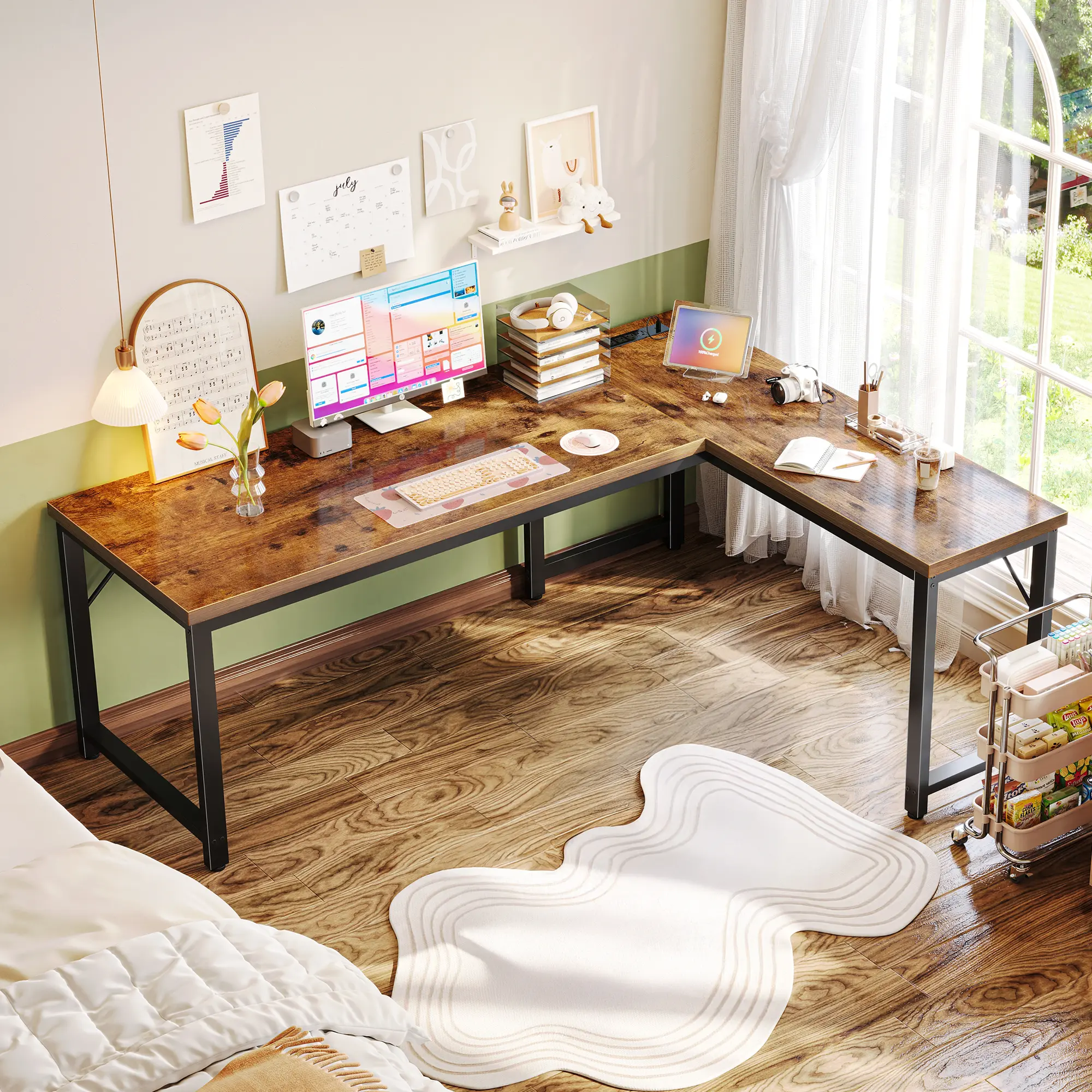 ·【Thicker Desktop & Heavy Workloads】From paperwork to creative projects, this 0.95 inches thick, high-density desktop l shaped office desk gives you the sturdy, scratch-resistant, waterproof surface and 220 lbs weight capacity you need to focus and get things done. Plenty of space for multiple monitors, notebooks, and that much-needed coffee