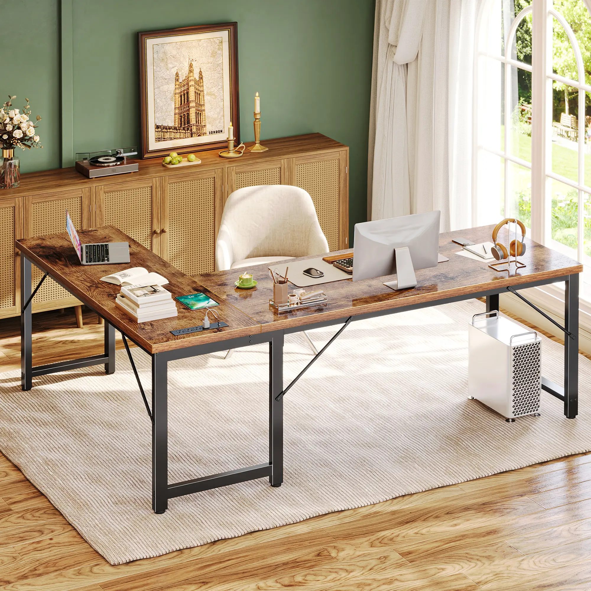 【Built-in Power Outlets】No more crawling under your desk for outlets! Stay powered up with 4 AC outlets, 1 USB port, and 1 USB-C ports on the L shaped gaming desk, supporting multiple devices at once. This work desk is perfect for charging laptops, phones, and office gadgets without cluttering your workspace