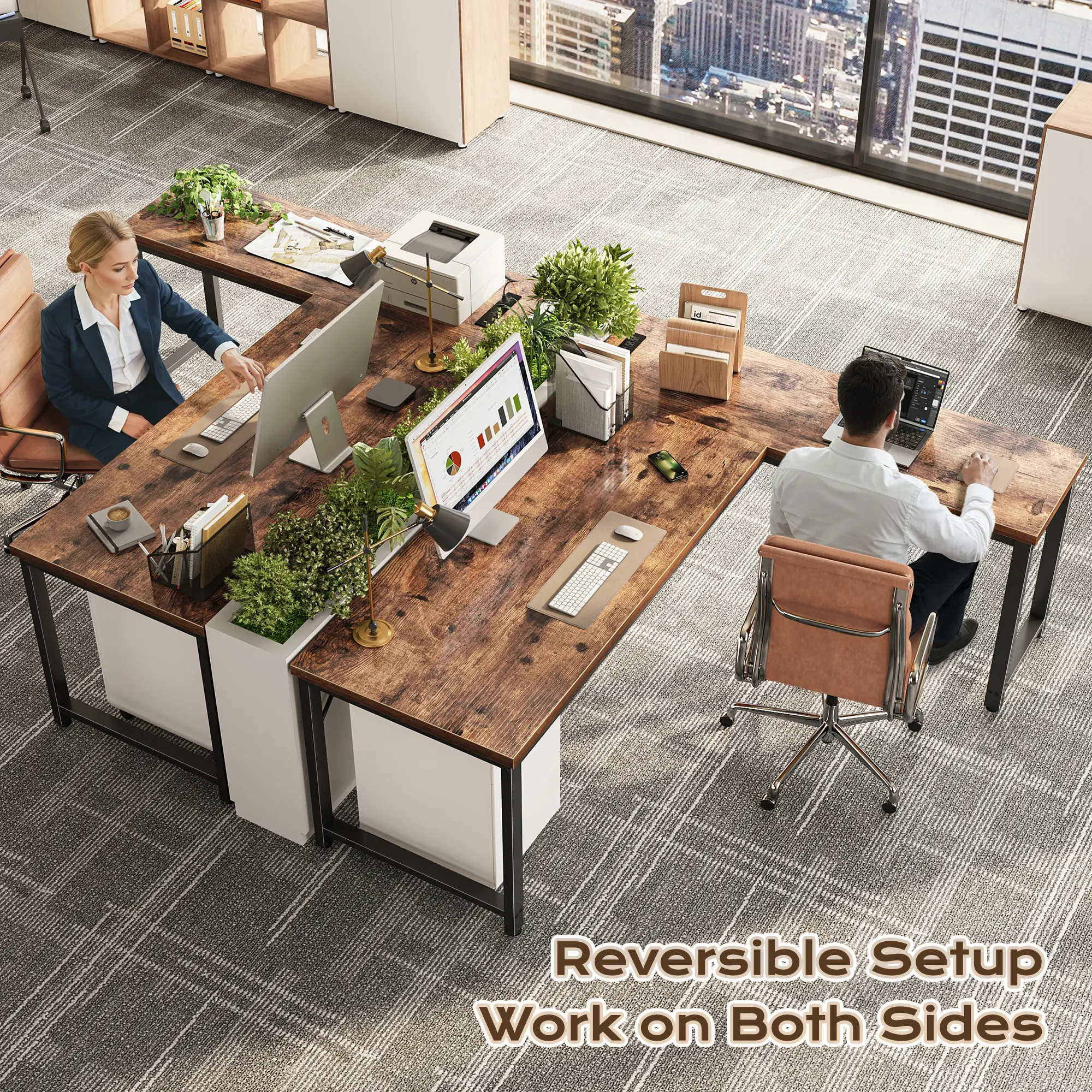 ·【Reversible L Shaped Computer Desk】Need more space? This reversible l desk can be tucked neatly into a corner or reversed to fit your setup with large legroom. Got a work buddy? Combine 2 pc desks for a seamless 2-person workstation. Plus, the L-shape gives your elbows proper support and extra room for monitors, notebooks, and, of course, coffee