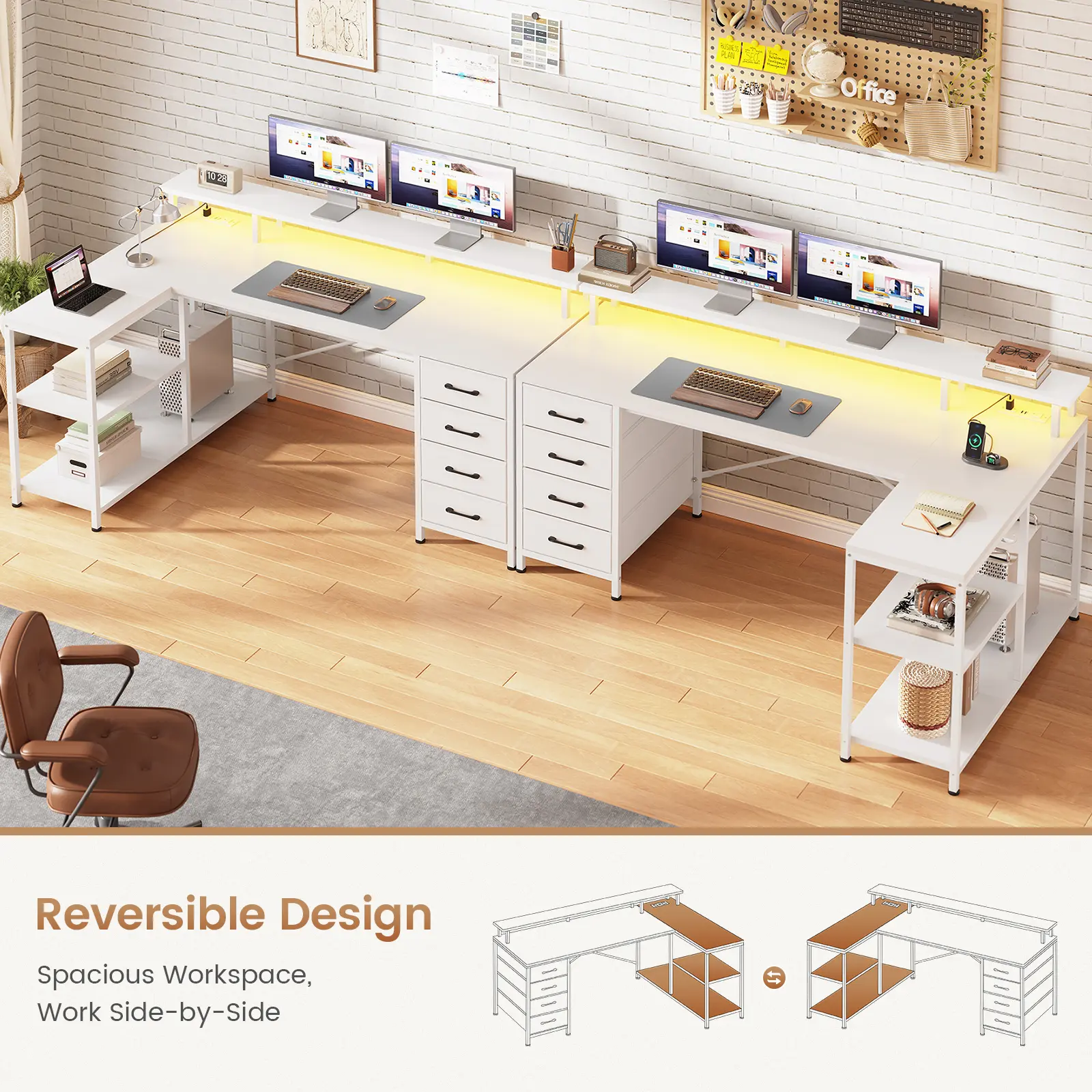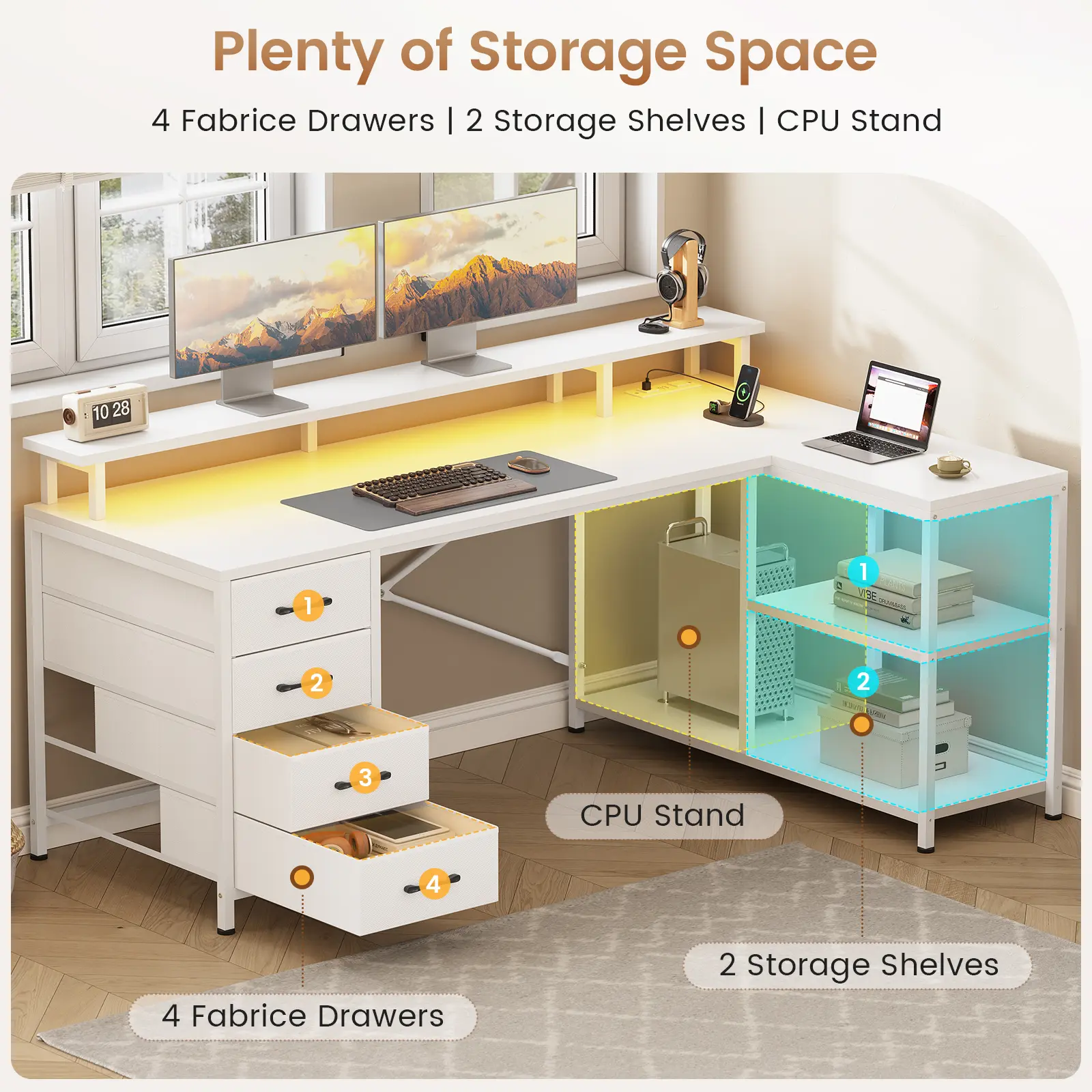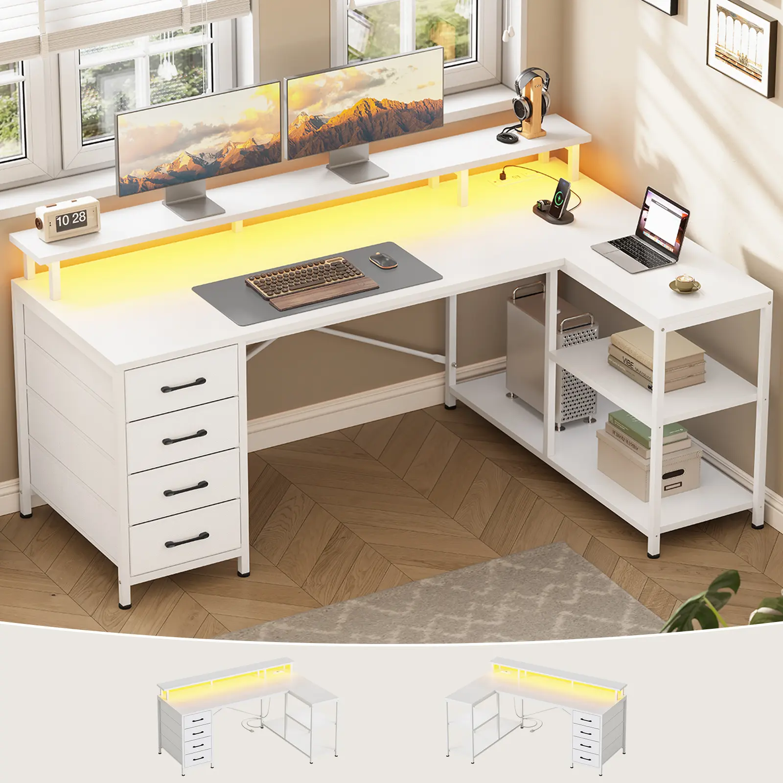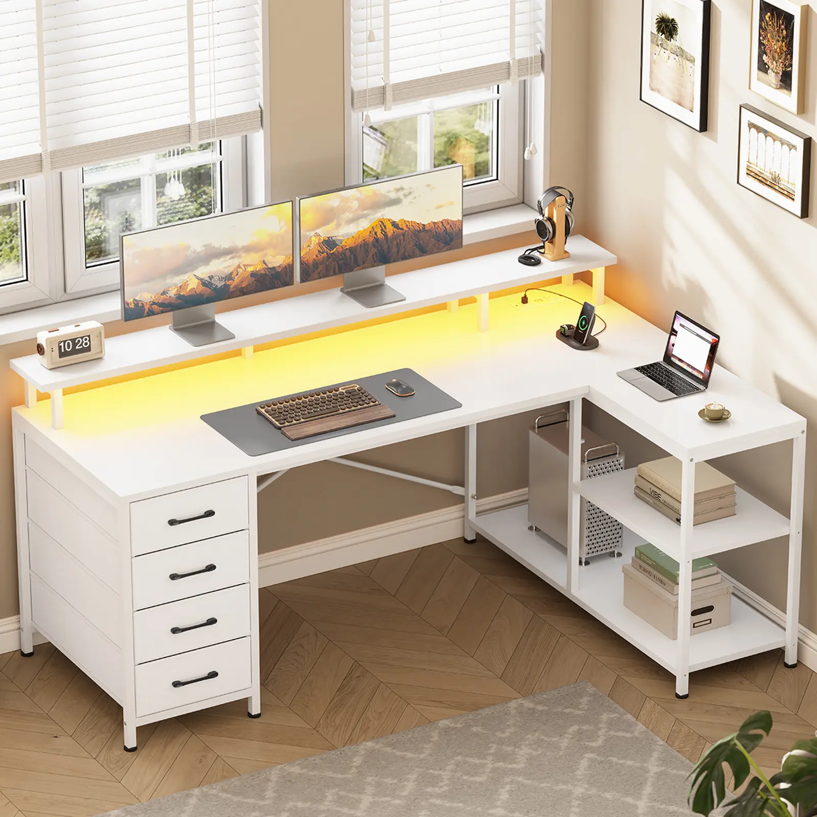 I absolutely love this desk! The L-shaped design fits perfectly in my space and gives me plenty of room to work comfortably. The drawers are super convenient, assembly was easy, and it feels sturdy and well-made. Beautiful, clean, and modern!