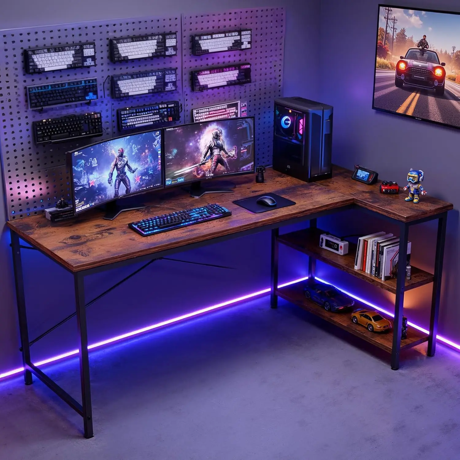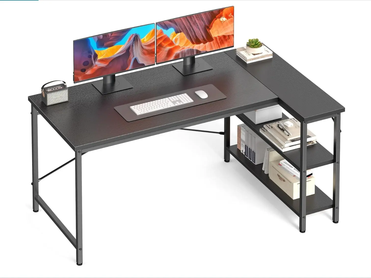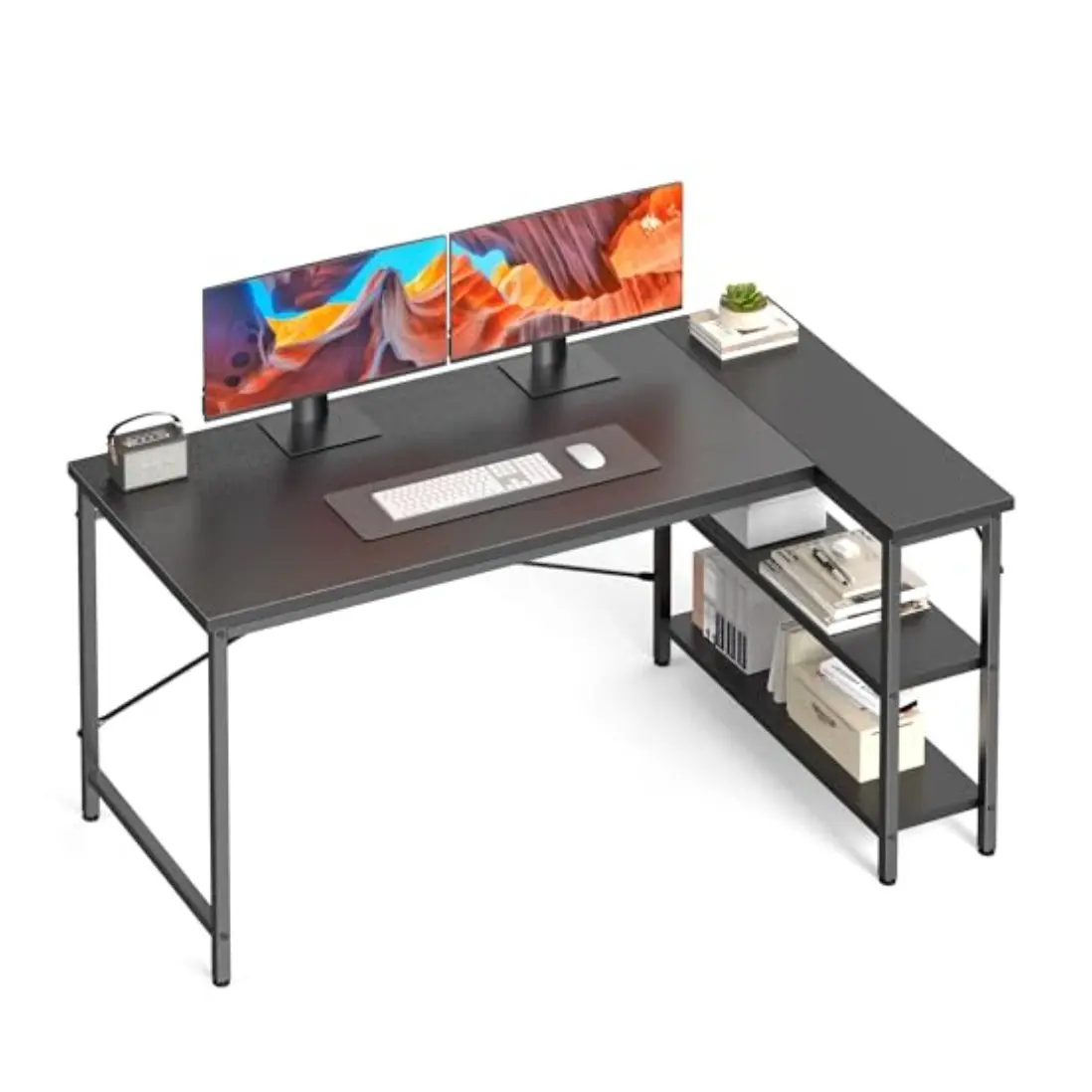 Designed to fit perfectly in any corner, this L-shaped desk features reversible 7-tier storage shelves that can be installed on the left or right side based on your room layout. It maximizes space while keeping your workspace organized and efficient.